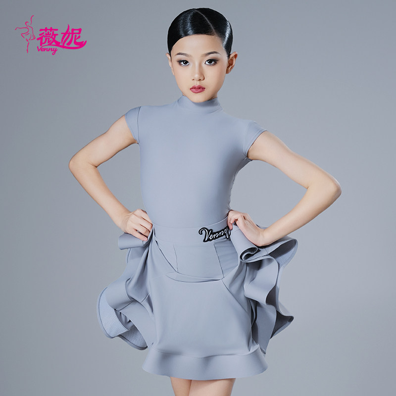 薇妮拉丁舞比赛规定服女童专业夏季短袖无鱼骨体协赛事儿童赛服
