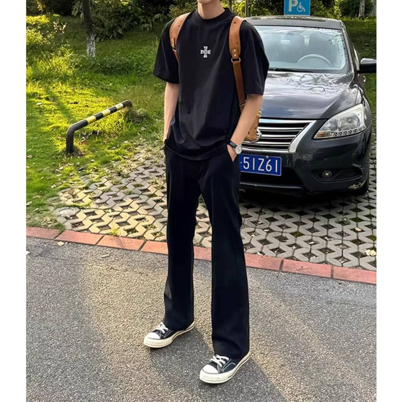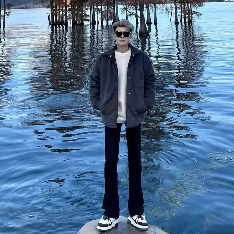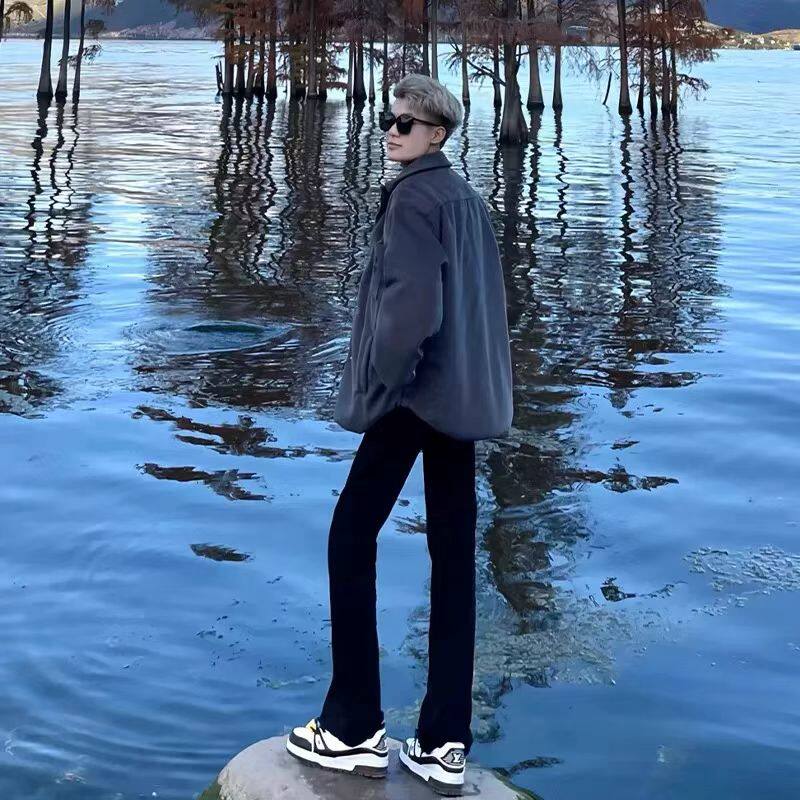 黑色微喇牛仔裤男款美式高街vibe裤子百搭修身显瘦直筒柳叶弯刀裤