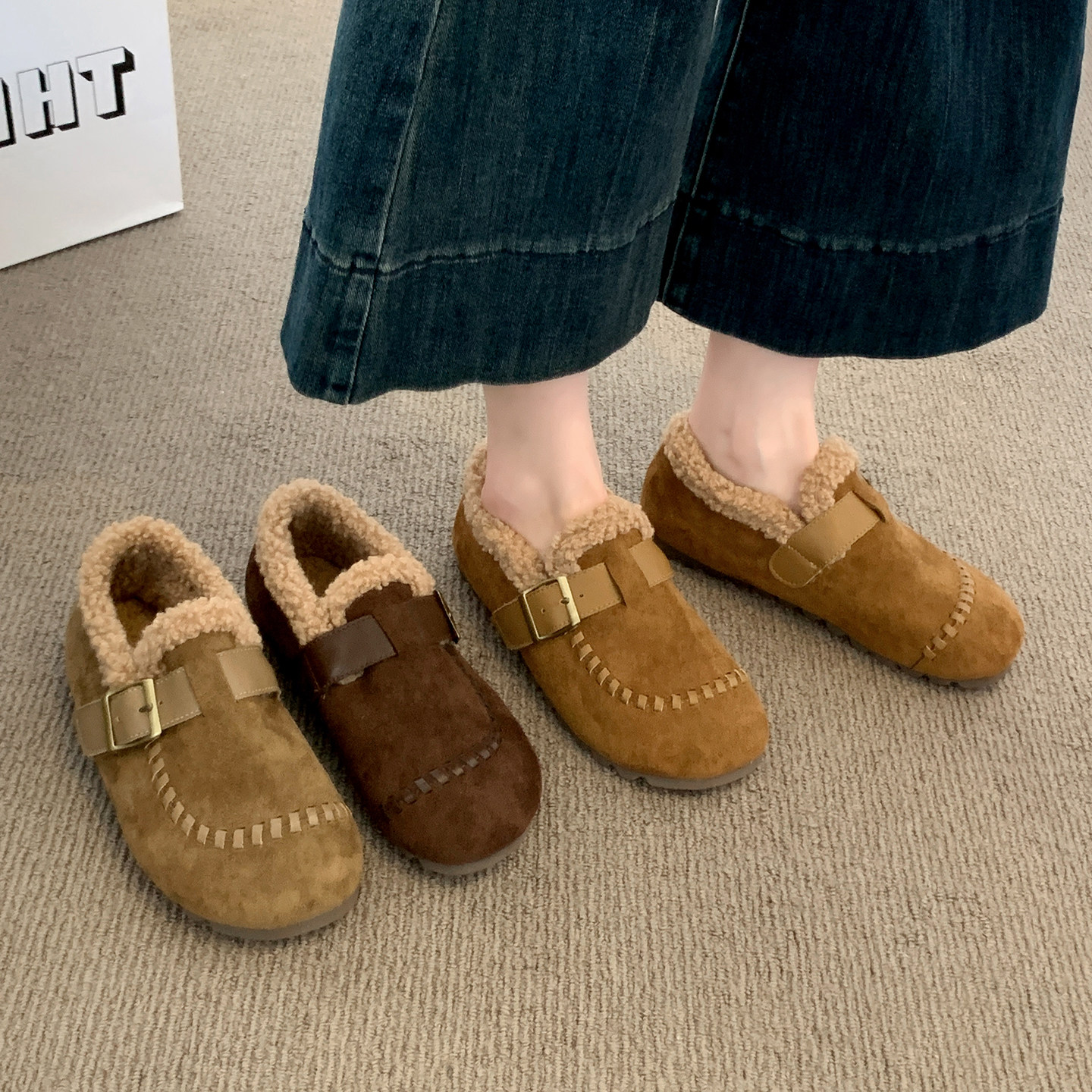 爆款复古休闲勃肯鞋女2026秋冬季新款内增高加绒豆豆鞋毛毛棉鞋子