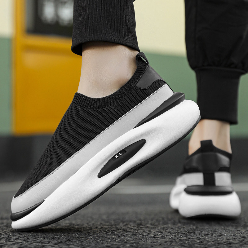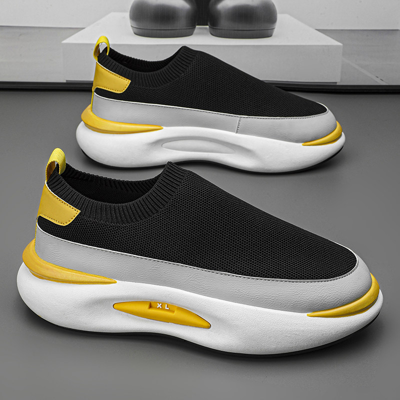 男鞋2026新款夏季透气飞织网鞋青少年厚底增高休闲运动一脚蹬潮鞋