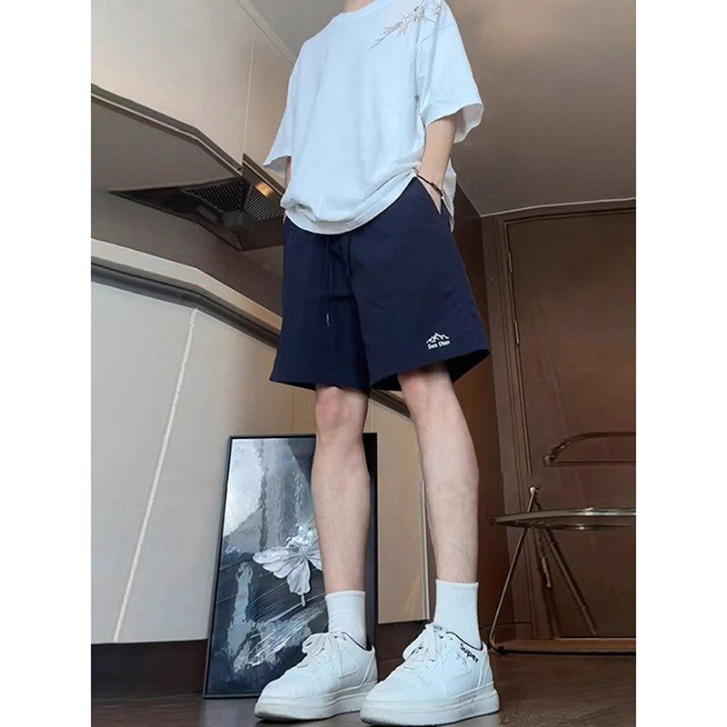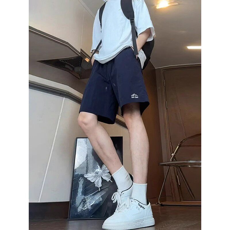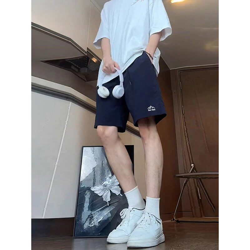 藏青色尼龙短裤男款夏季外穿美式篮球运动裤子速干冰丝休闲五分裤