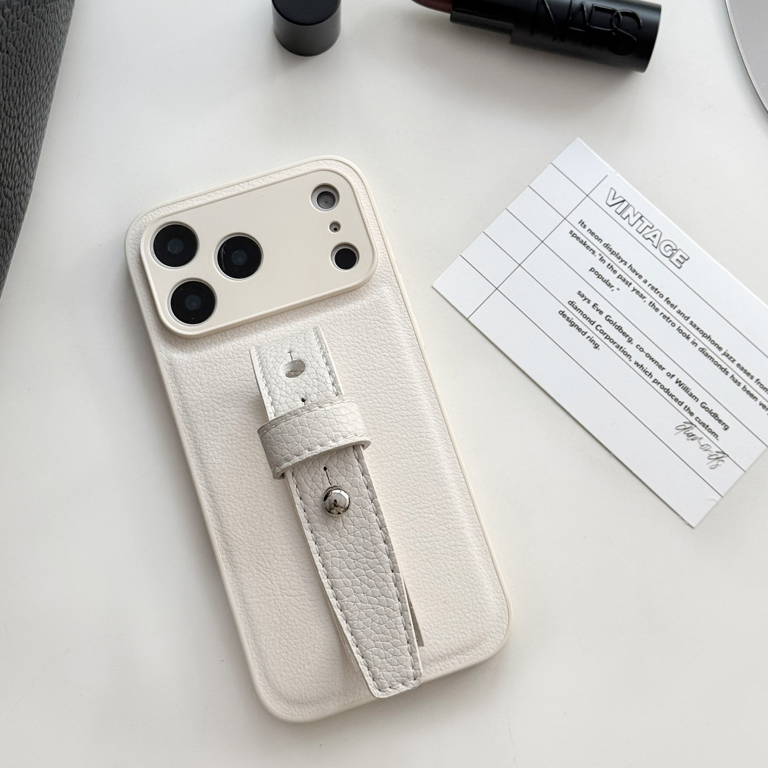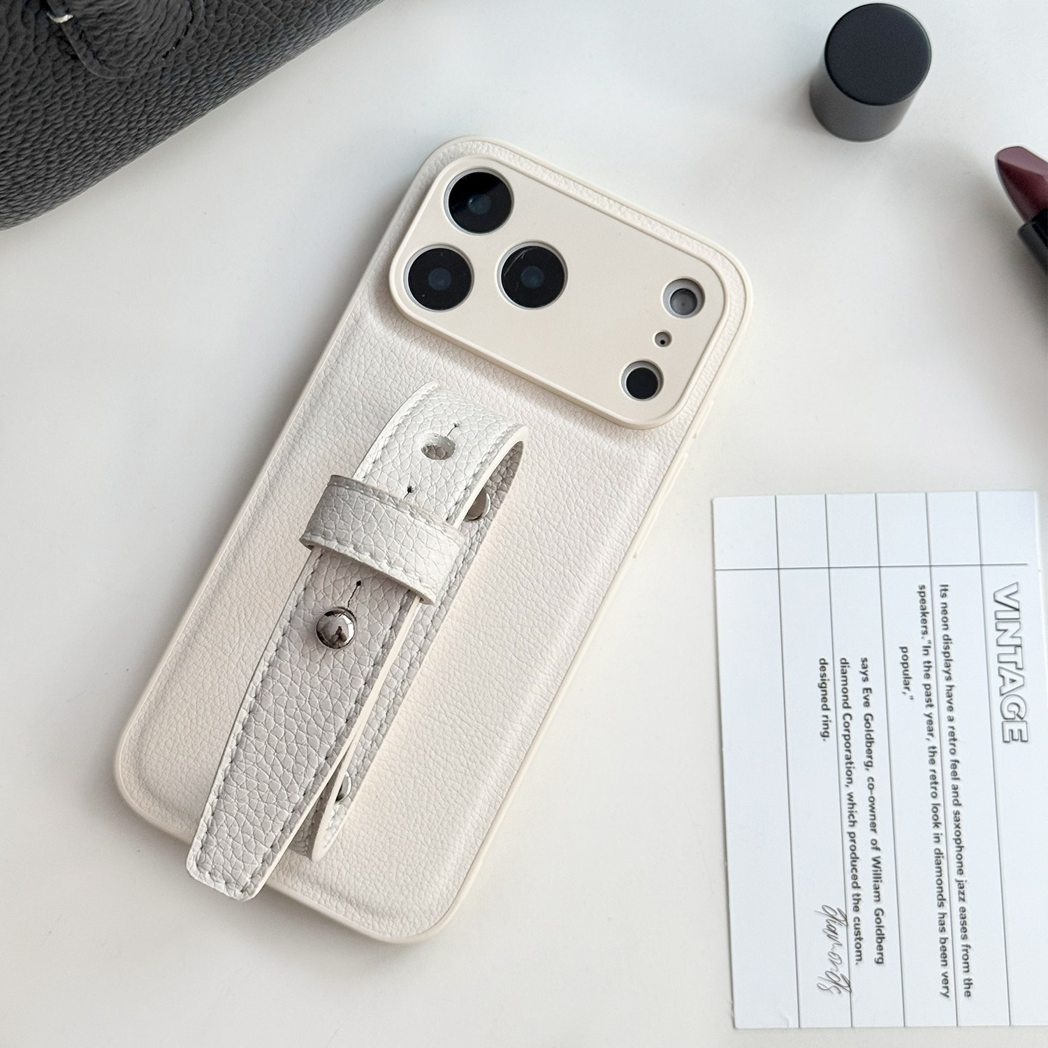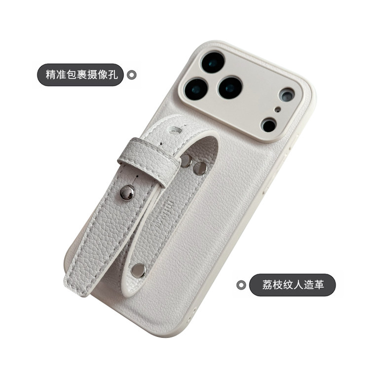 复古白荔枝纹豆豆钉适用苹果17promax精孔腕带手机壳复古气质简约小众高级感iphone16/15系列全包便携保护套