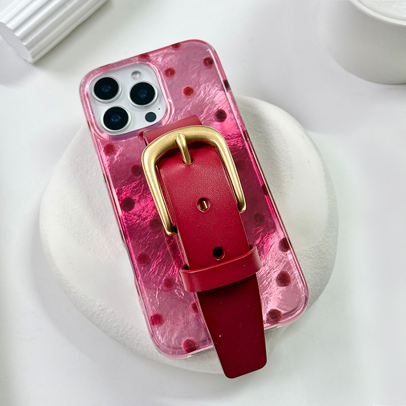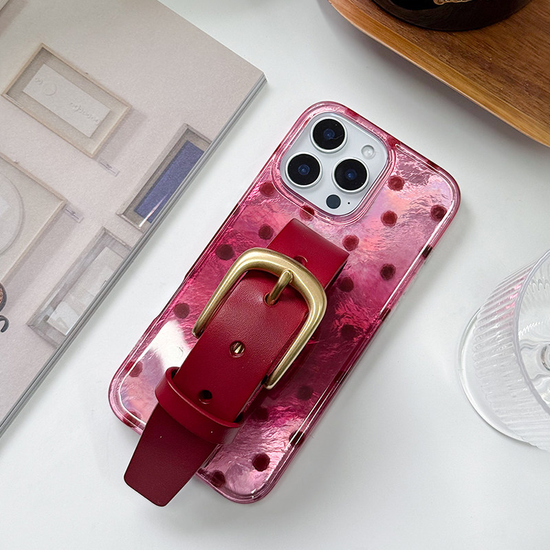 安可拉红丝绒波点宽腕带闪光皮带手机壳系列适用苹果17promax手机壳腕带新款iphone16/15系列原创便携设计