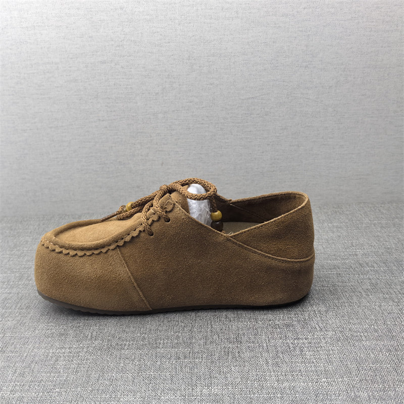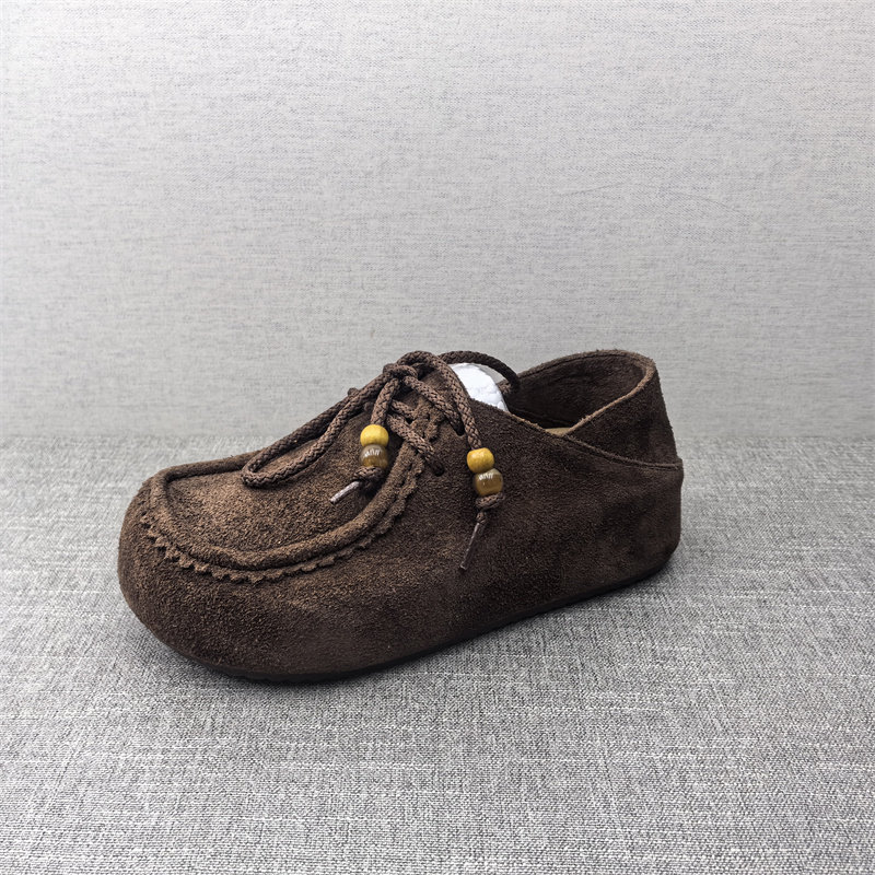 清仓真皮勃肯鞋女2025春款系带内增高圆头休闲鞋百搭舒适袋鼠鞋