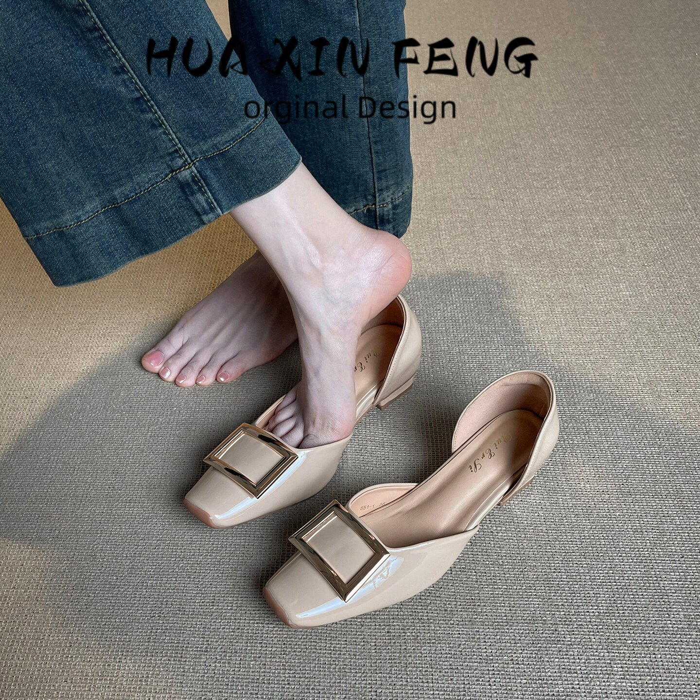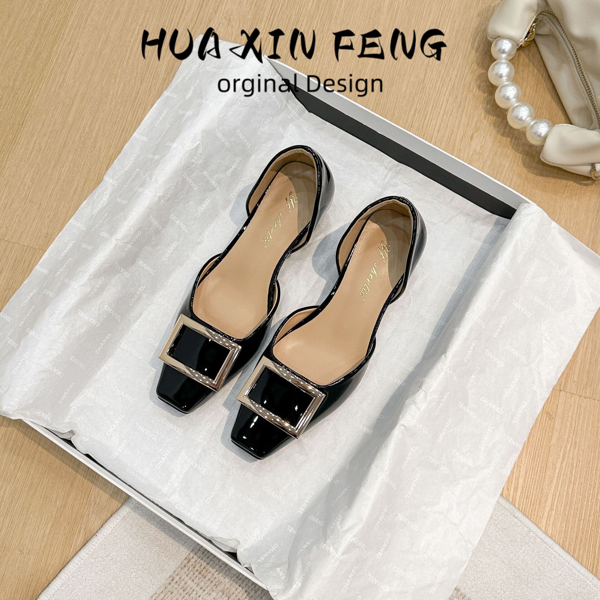 花信风 隐形内增高6CM方扣单鞋女漆皮2026新款夏季气质中空凉鞋女