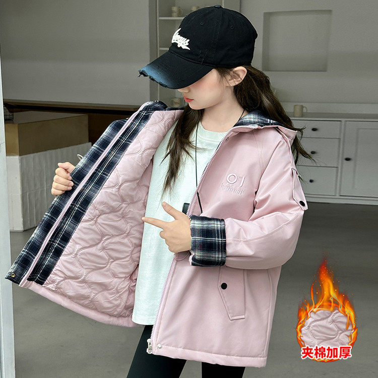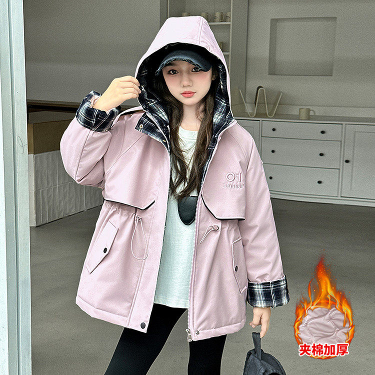 女童风衣外套夹棉加厚冬装2026新款加绒中长款大童薄棉衣二棉洋气