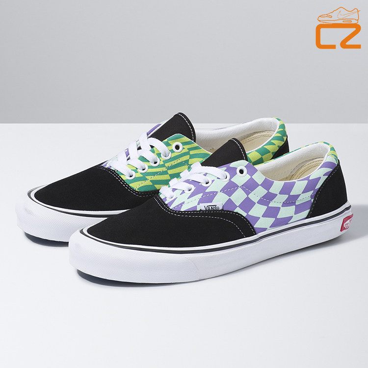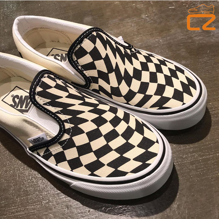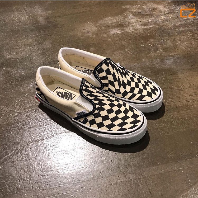 vans era slip-on 一脚蹬黑白旋转棋盘格 经典男女款低帮帆布鞋