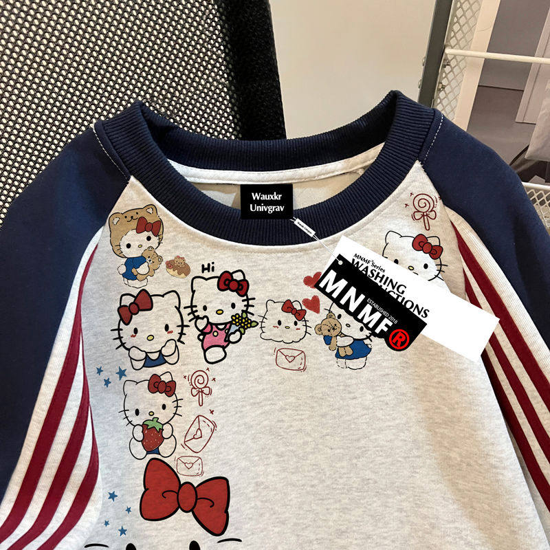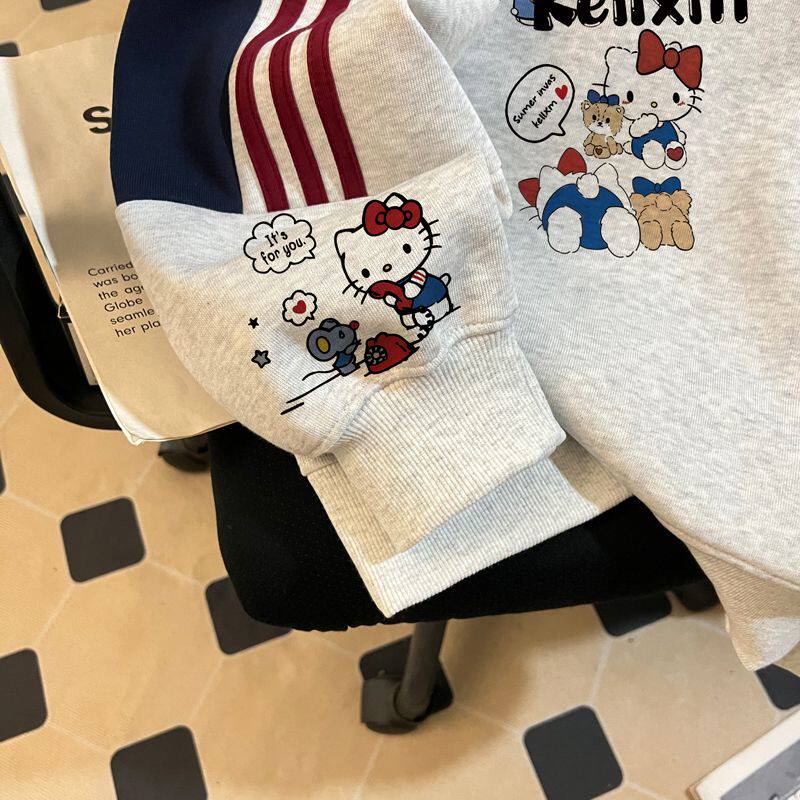 女童插肩三条杠卫衣2026春秋季新款卡通印花中大童圆领外套上衣潮