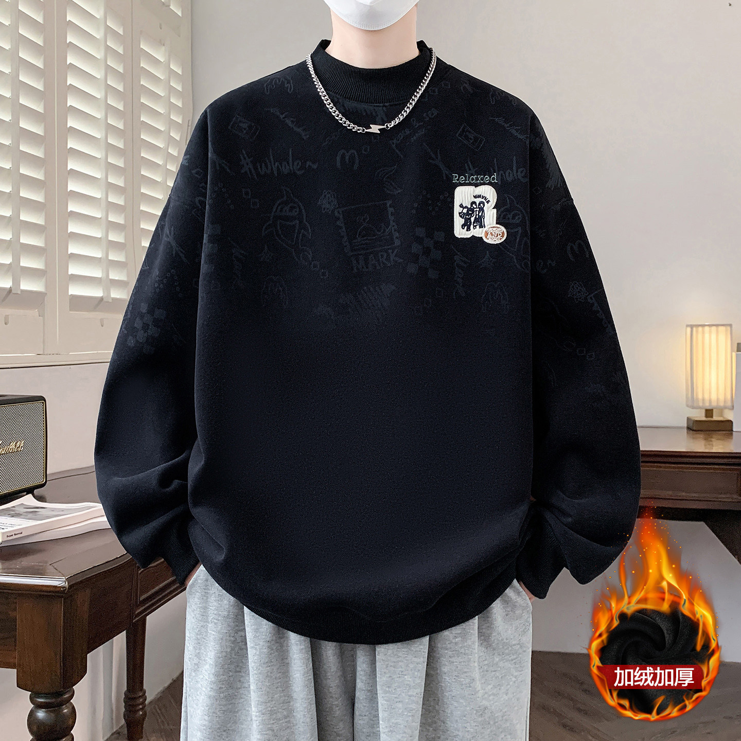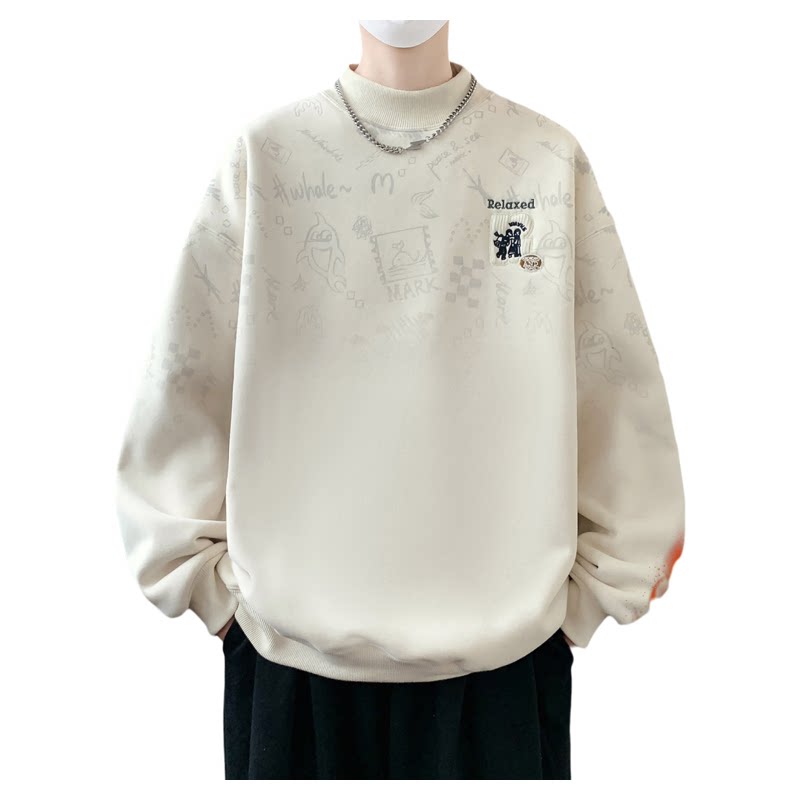 半高领卫衣男生秋冬季新款加绒加厚青少年上衣保暖潮流打底衫男装