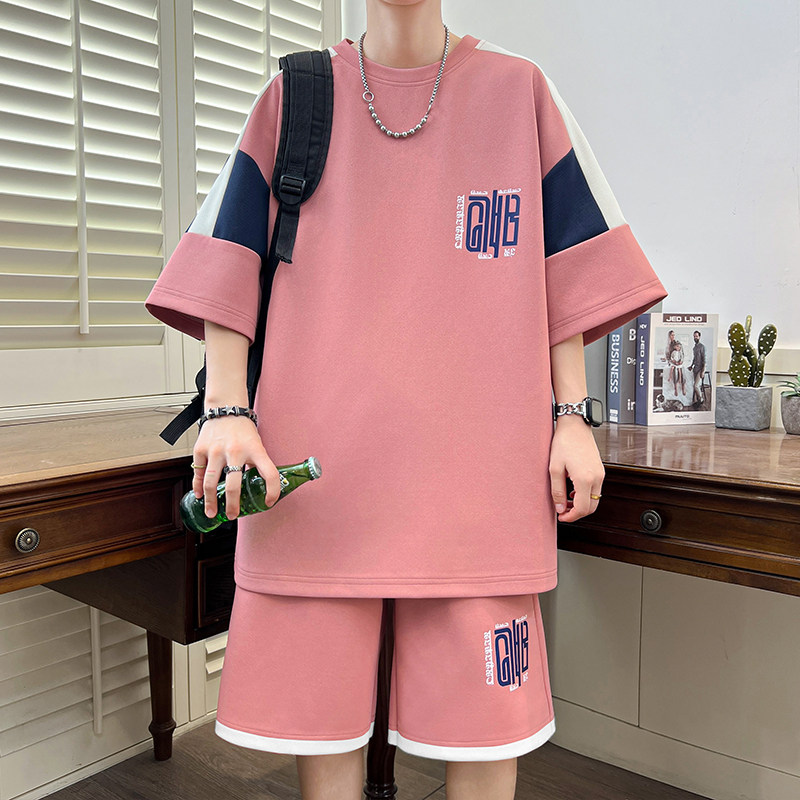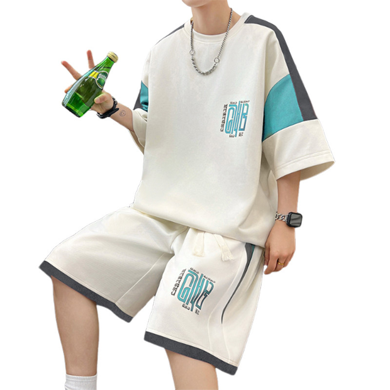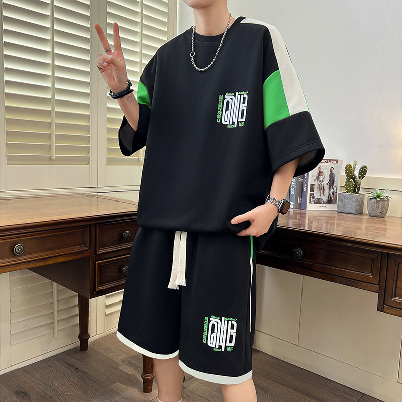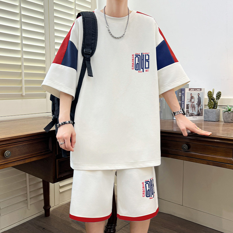 休闲运动套装男孩夏季新款初中学生宽松冰丝大童短袖t恤男装潮牌