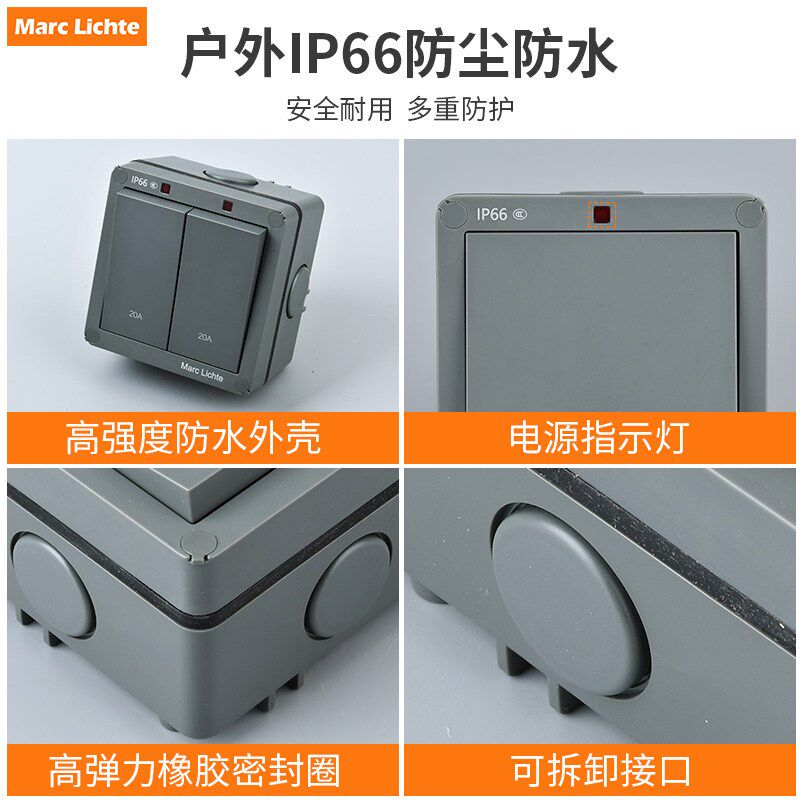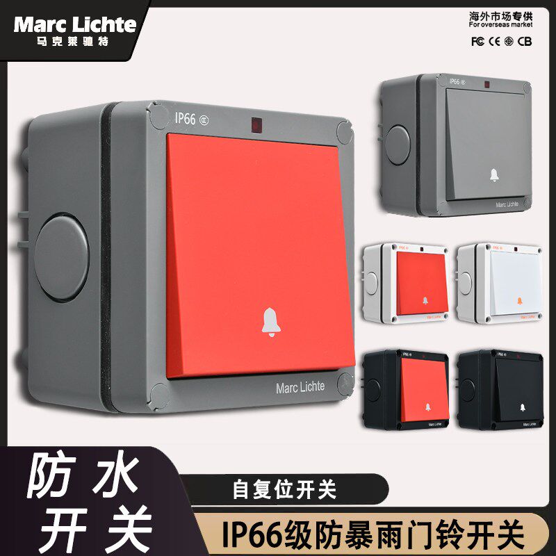 户外防水Ip66级门铃自复位回弹开关86型室外墙壁明装防暴雨面板