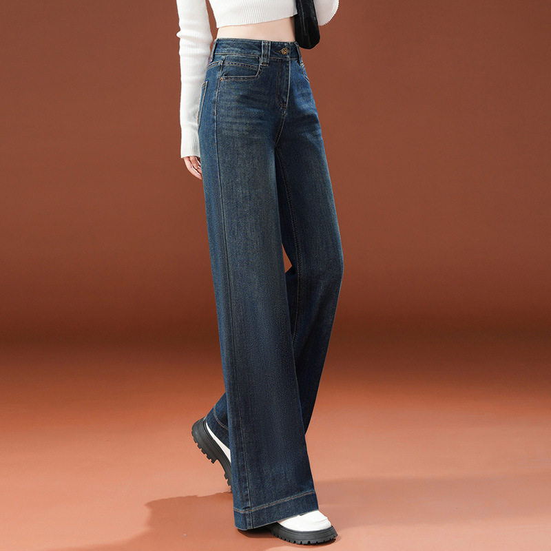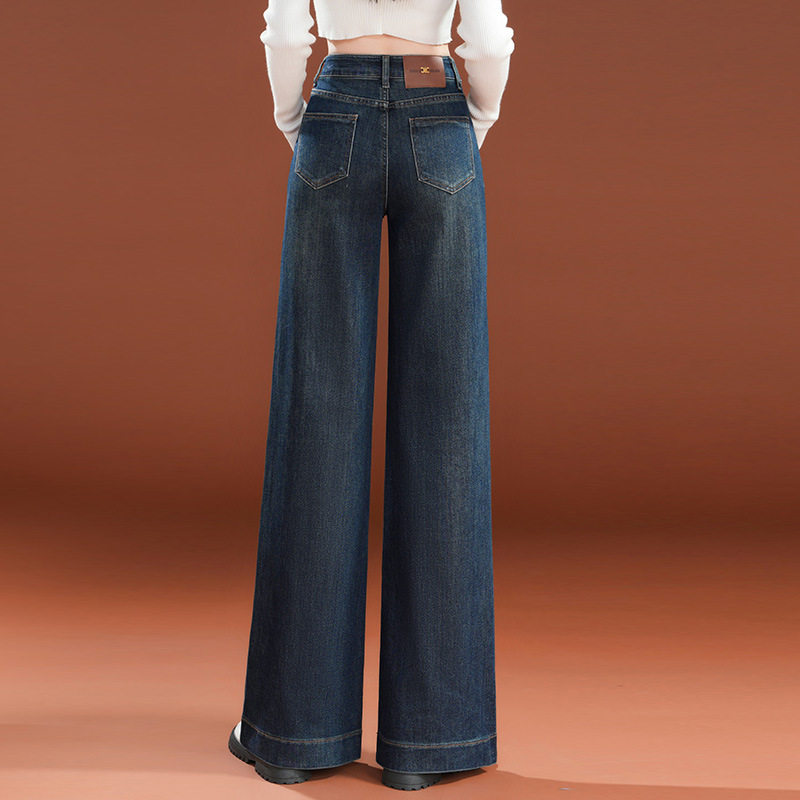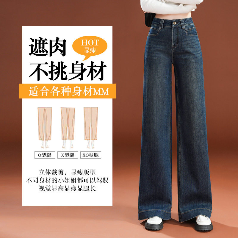 加绒加厚时尚直筒牛仔阔腿裤女裤子2026秋冬新款今年流行爆款长裤