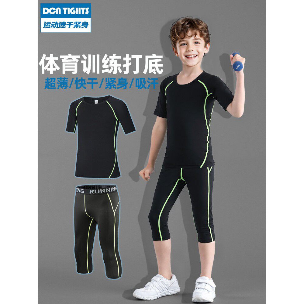 儿童速干运动套装夏季薄款短袖篮球打底紧身衣体能训练服运动跑步