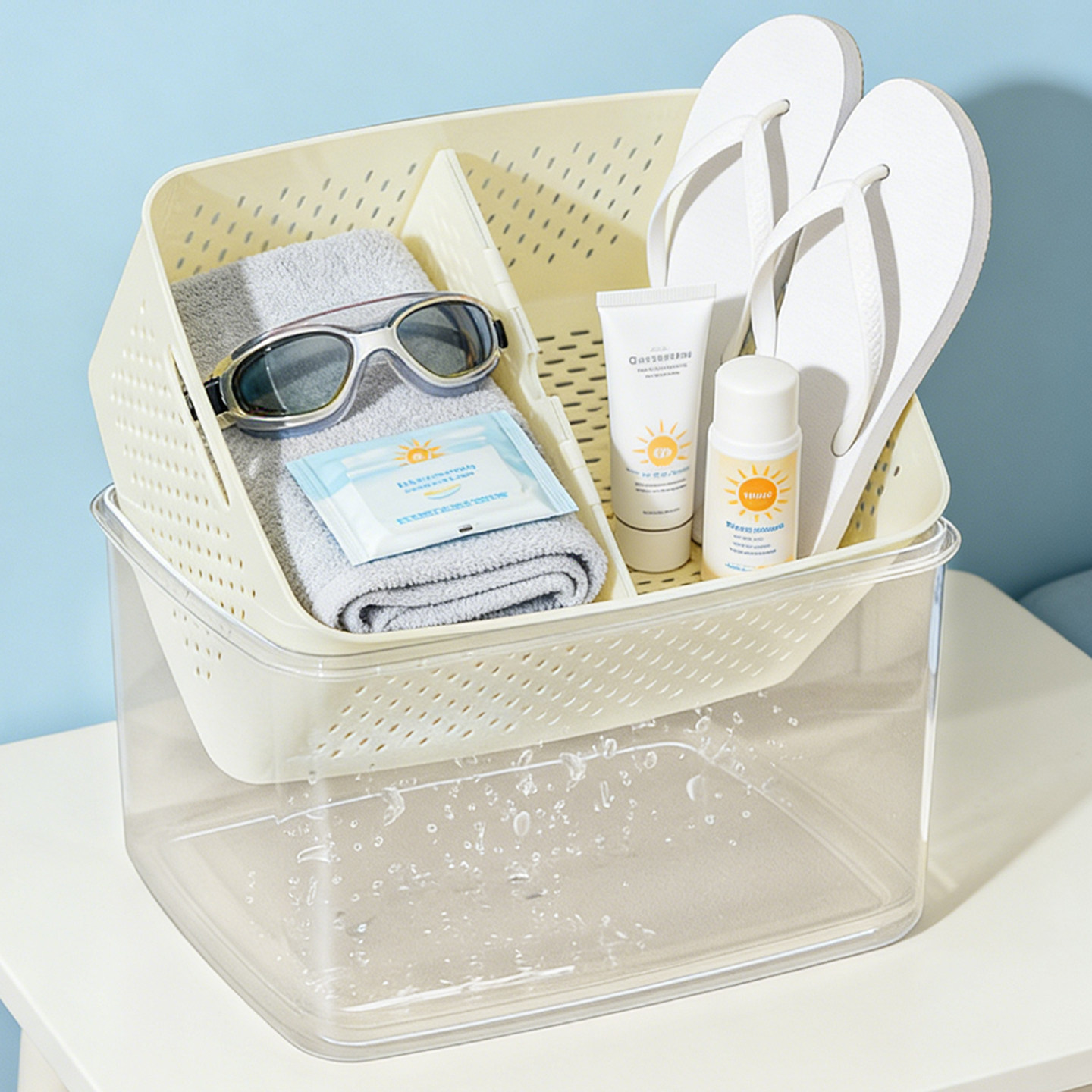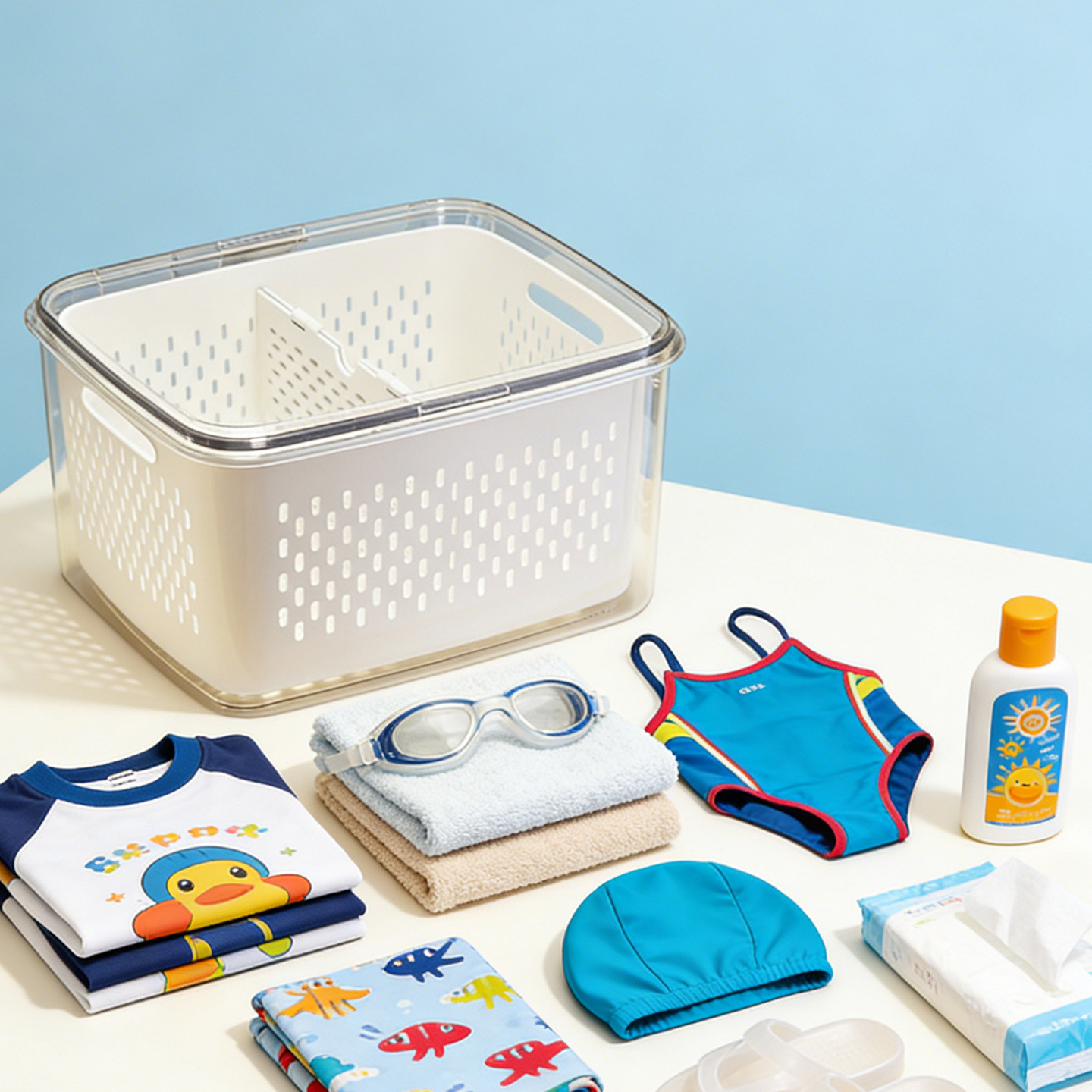 儿童手提式游泳专用装备收纳包干湿分离大容量防水塑料泳衣整理箱