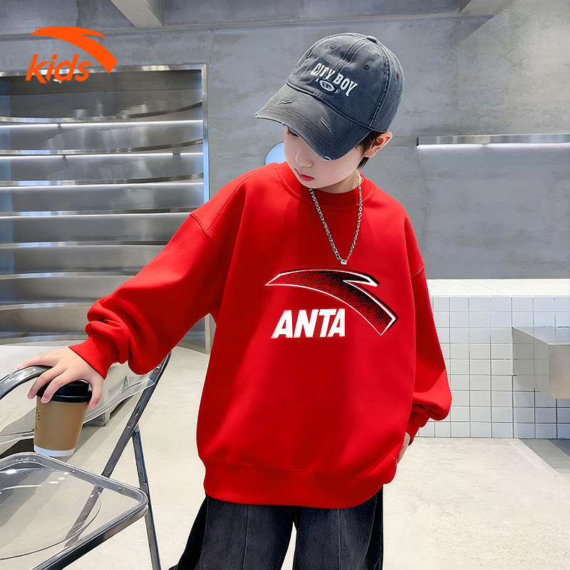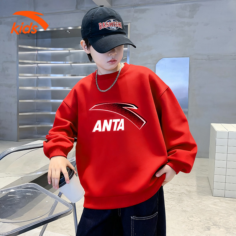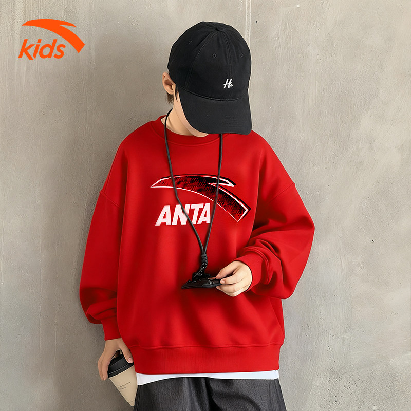 安踏儿童卫衣2026红色新年童装男童春装潮流时尚宽松加绒休闲上衣