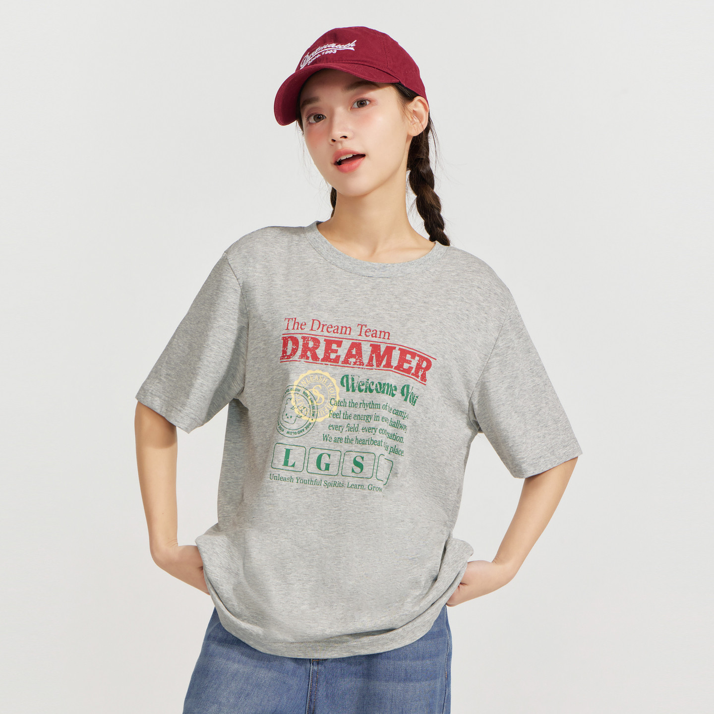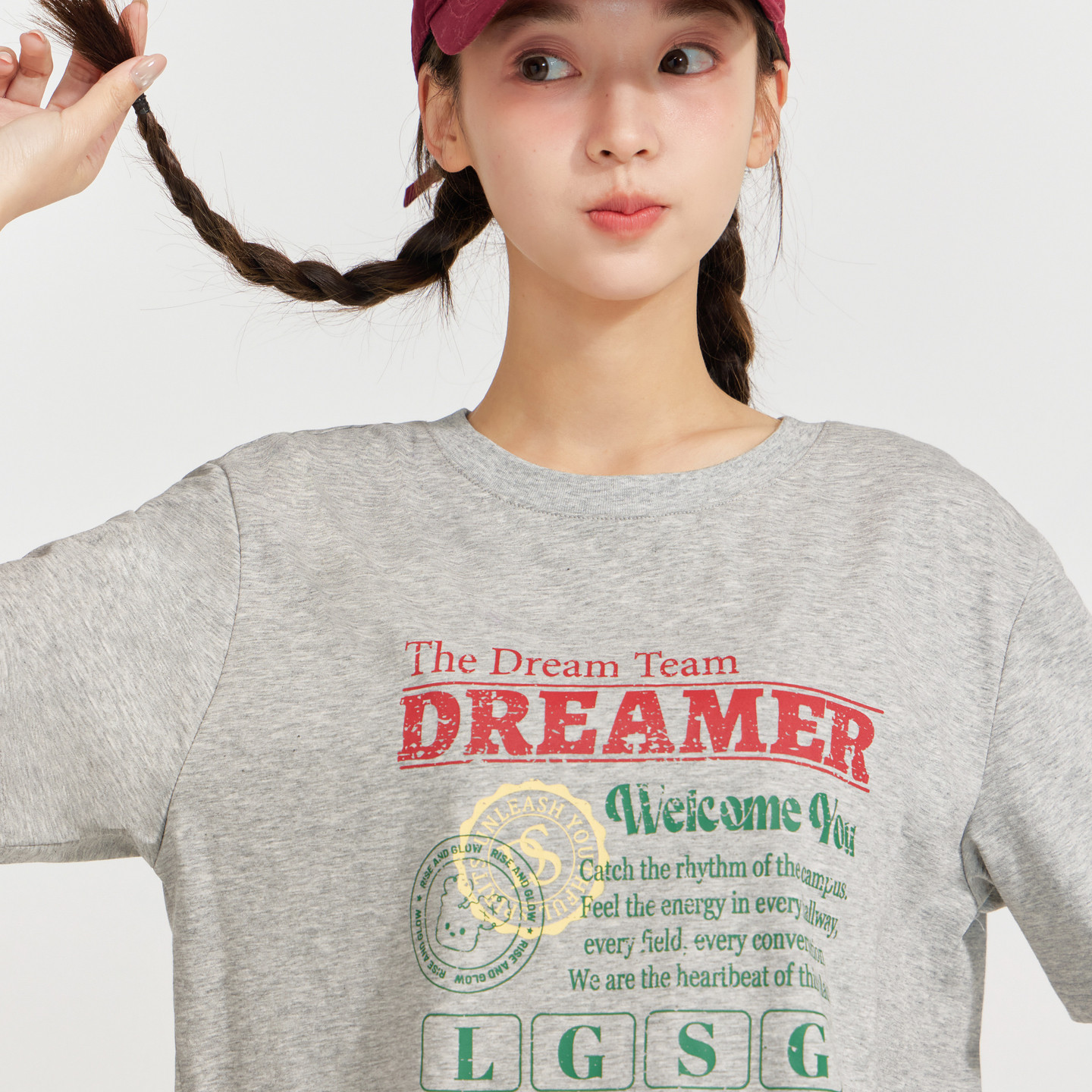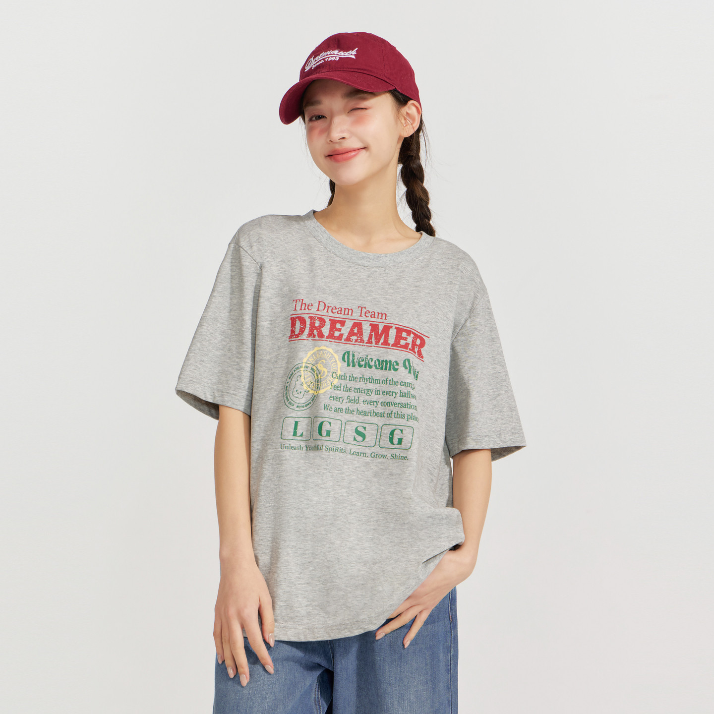 【凉感防晒】笛莎青少年2026夏新款宽松学院风印花短袖上衣T恤女