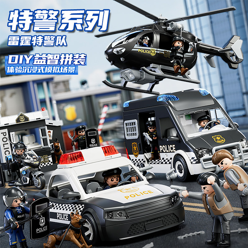 儿童特警车玩具小男孩子生日礼物3到6岁以上益智男童5—7摩比拼装