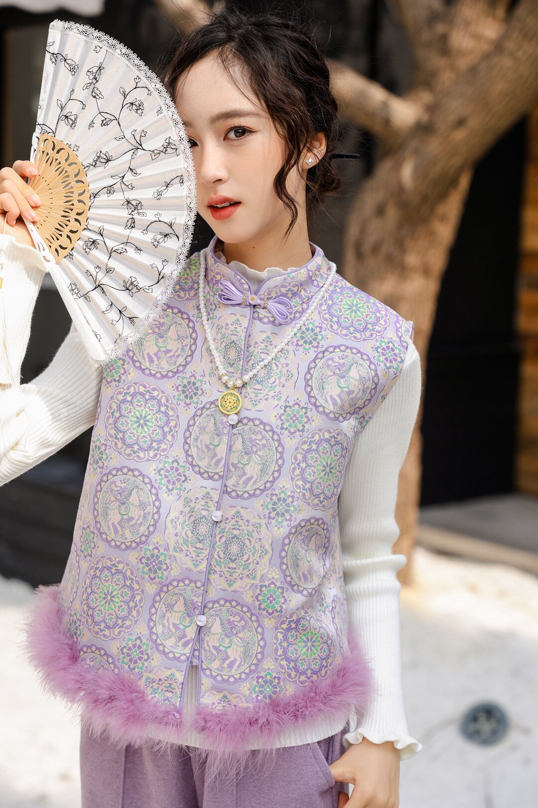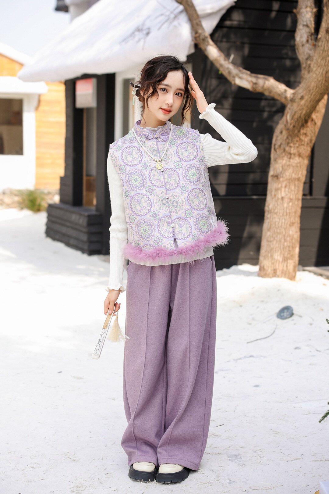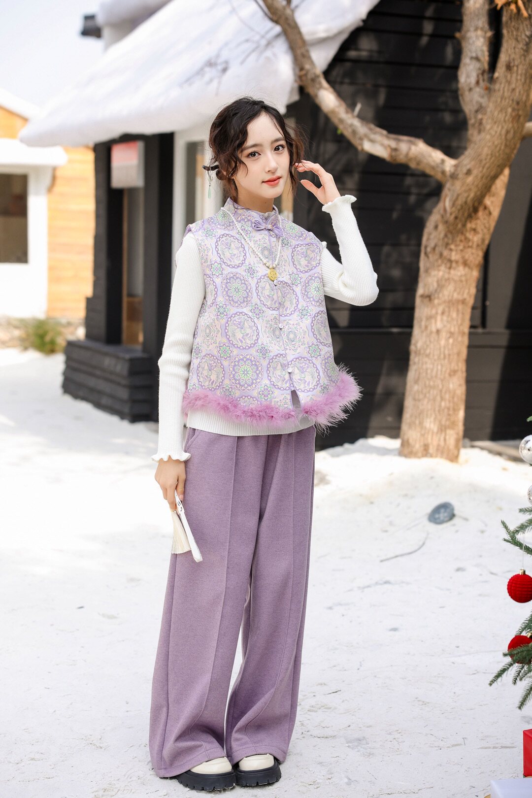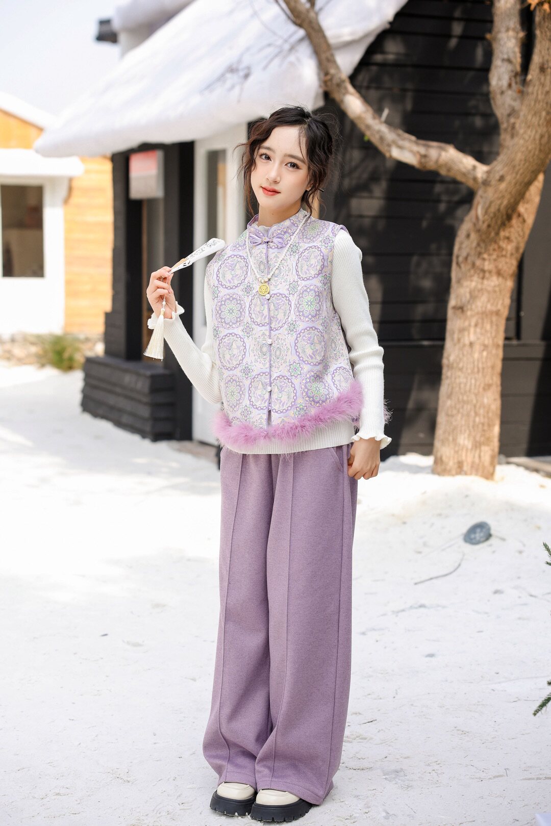 女童2026新款儿童洋气女孩汉服唐装秋冬装马甲毛衣裤子三件套装
