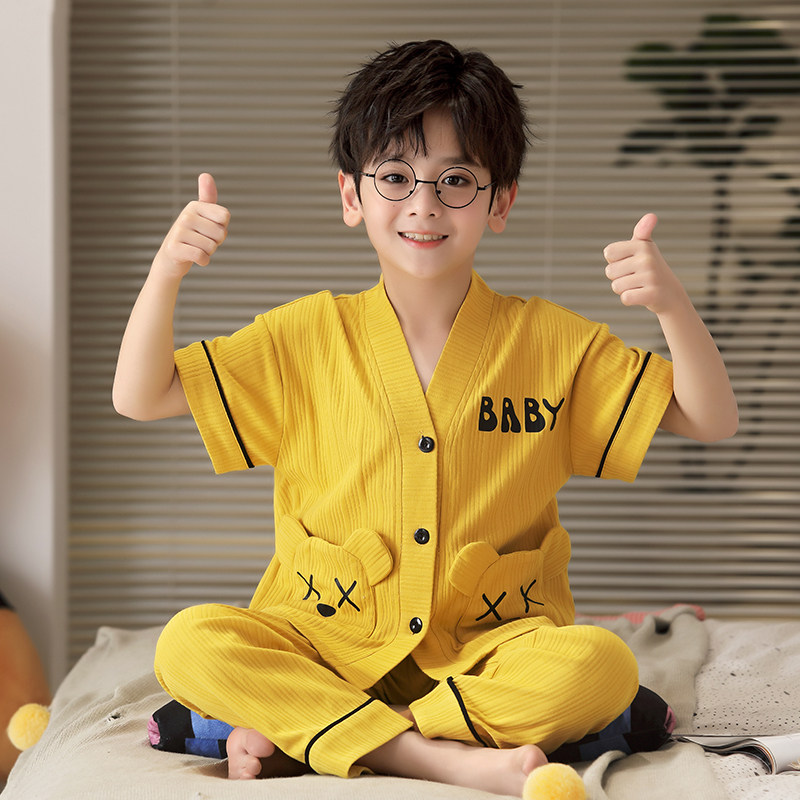 男童睡衣夏季纯棉长裤短袖宝宝春秋薄款男孩中小学生夏天透天套装