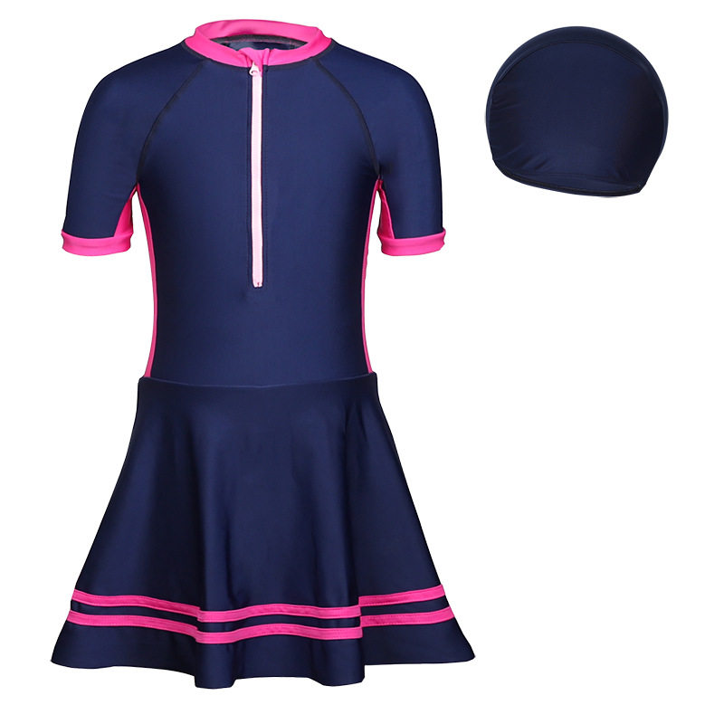 亦浪儿童中大童女孩青少年学生短袖连体裙式游泳衣修身弹力速干夏