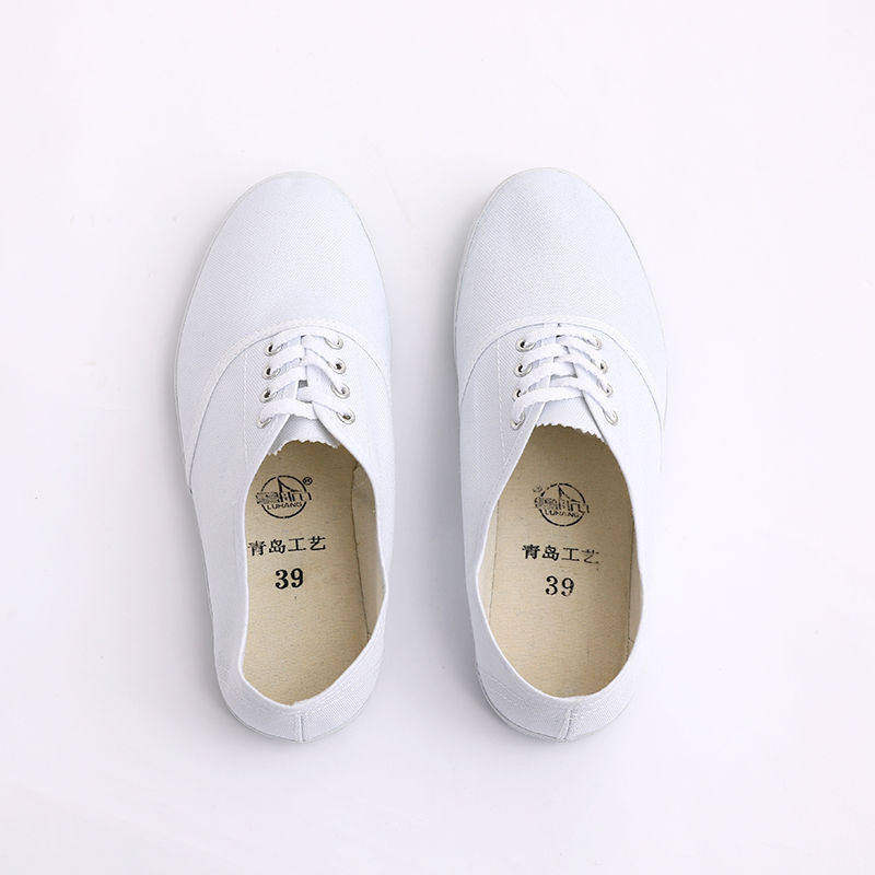 夏季小白鞋男女款透气体操表演运动鞋子全白色学生帆布老北京球鞋