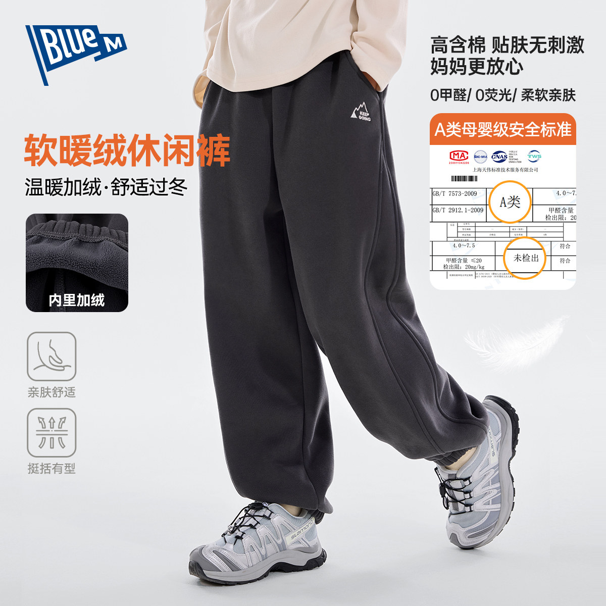Bluem男童裤子儿童运动裤加厚冬季男孩童装卫裤冬装青少年长裤绒