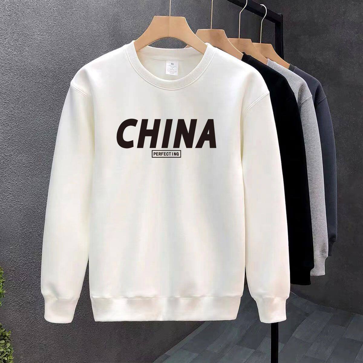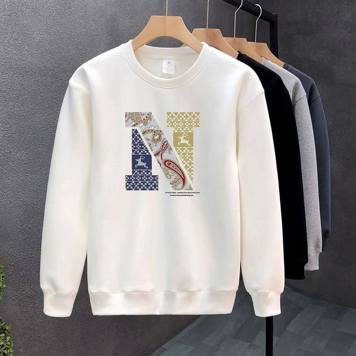 秋冬圆领卫衣男圆领青少年加绒加厚时尚潮流宽松长袖高中生卫衣