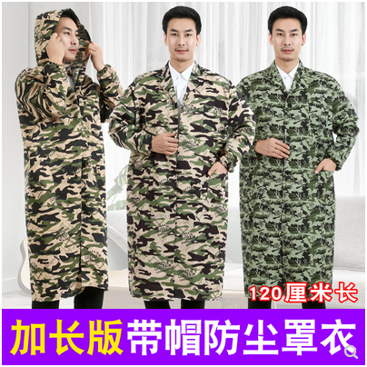 加大加肥夏季迷彩连帽罩衣蓝大褂仓库搬运工装长款防尘护衣大号
