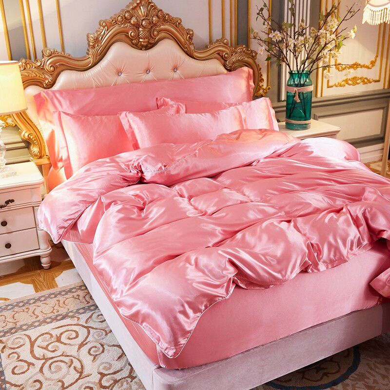水洗冰丝四件套夏天欧式真丝滑裸睡紫色床单床笠床上用品丝绸被套