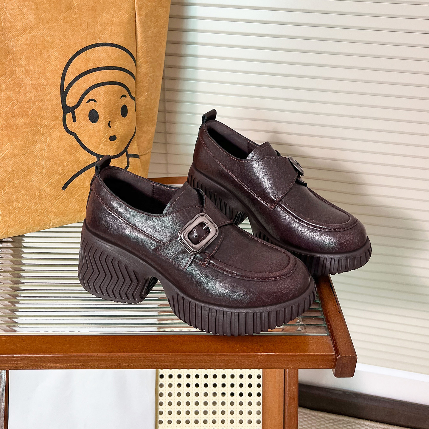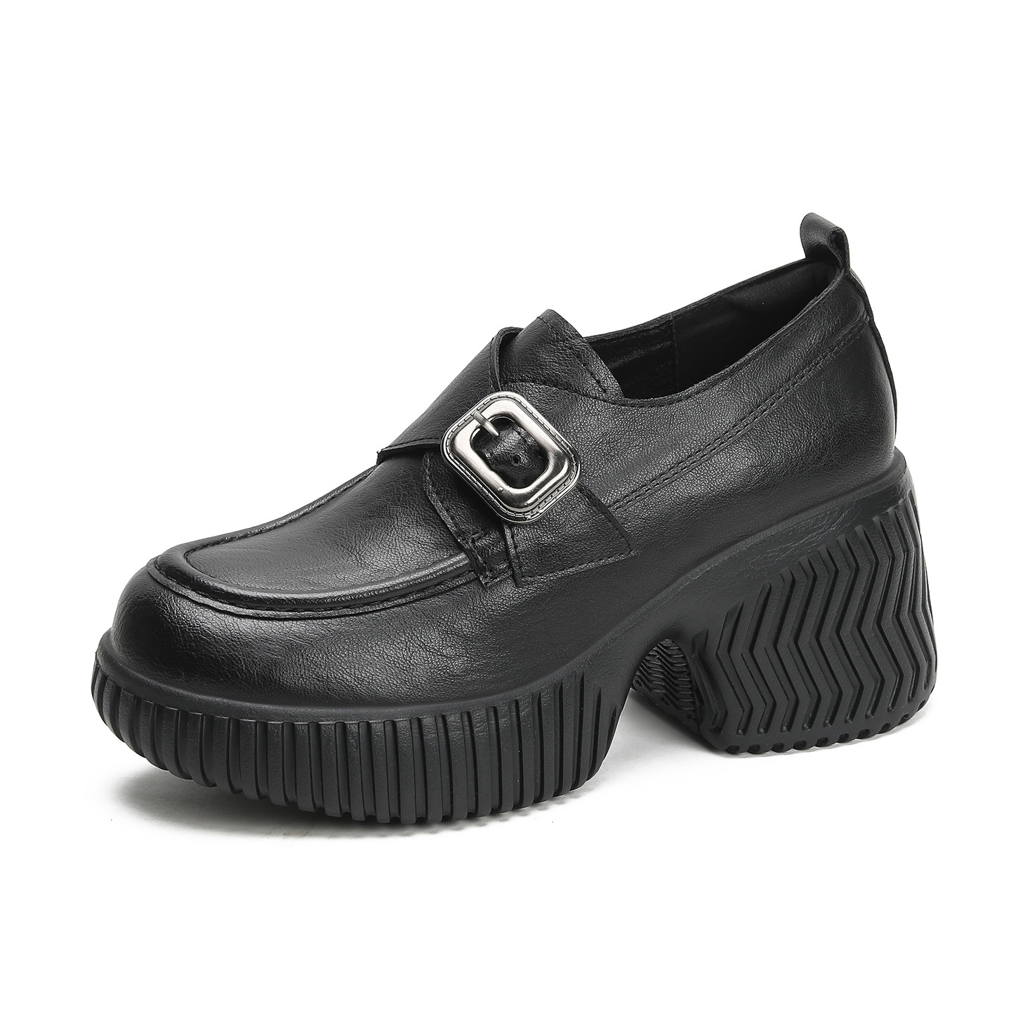增高粗跟厚底高跟英伦风配裙子春款小皮鞋女2026新款一脚蹬乐福鞋