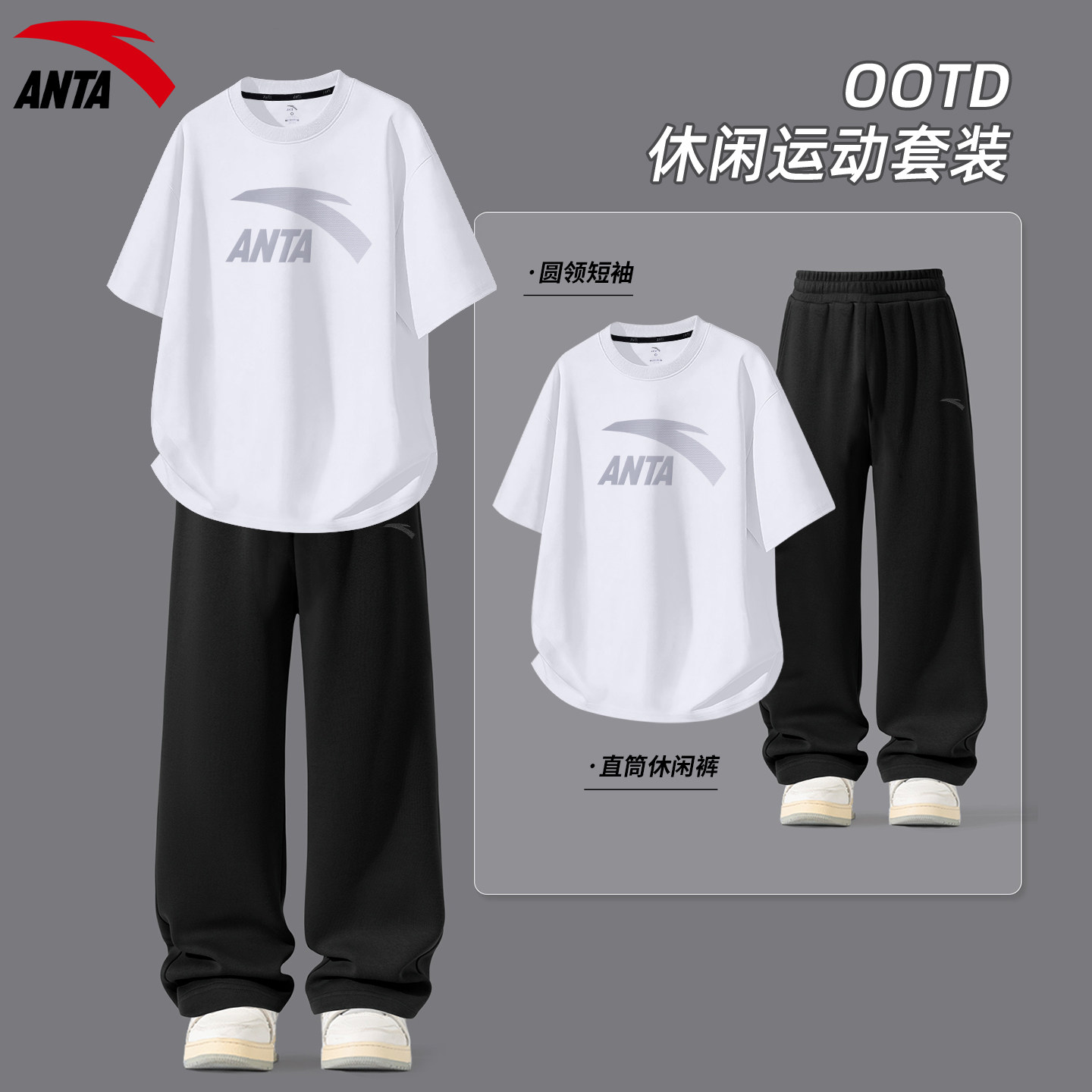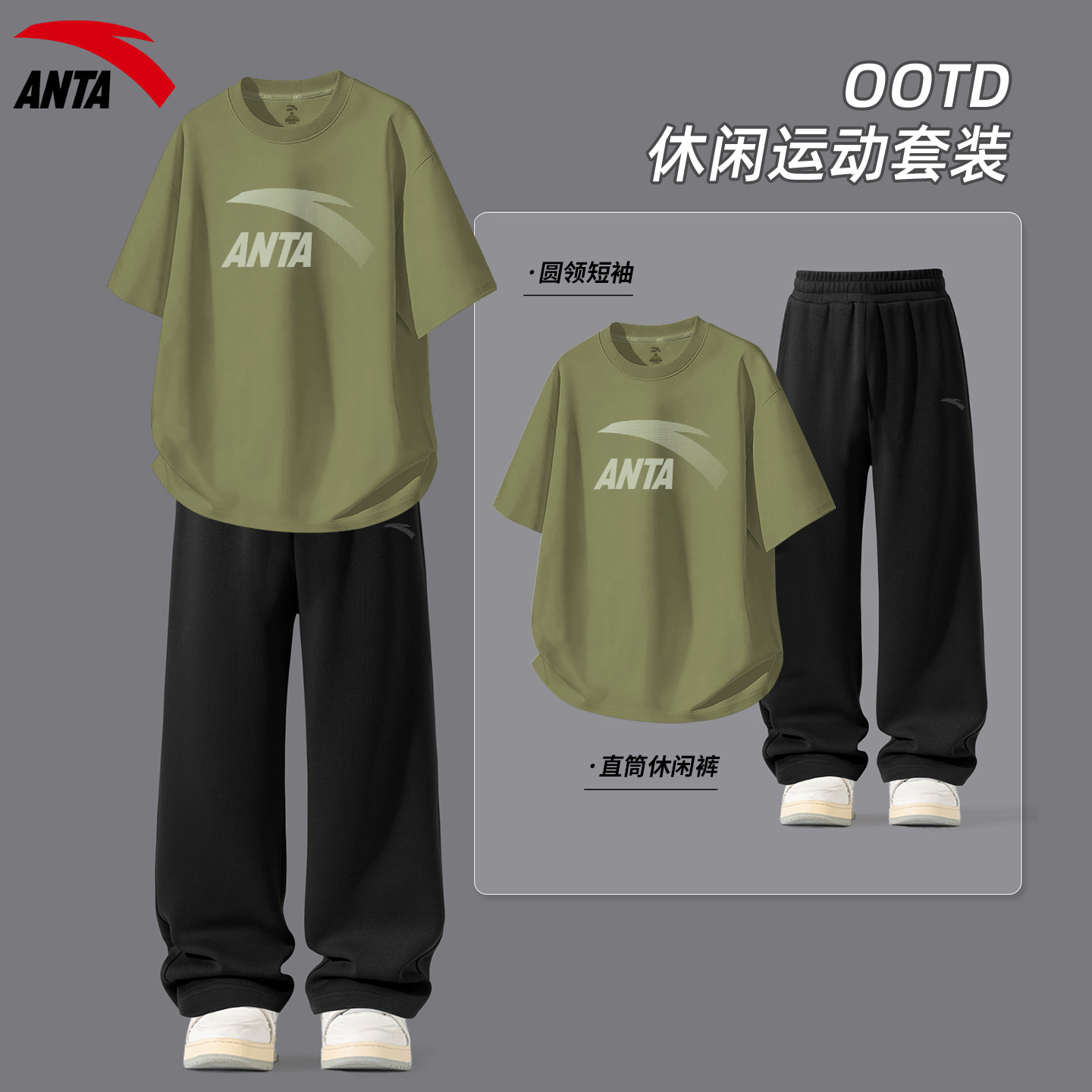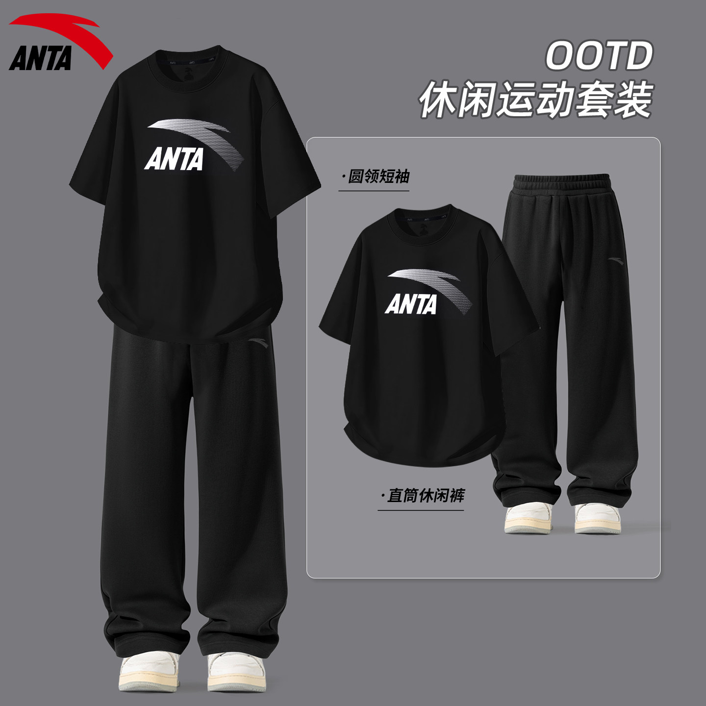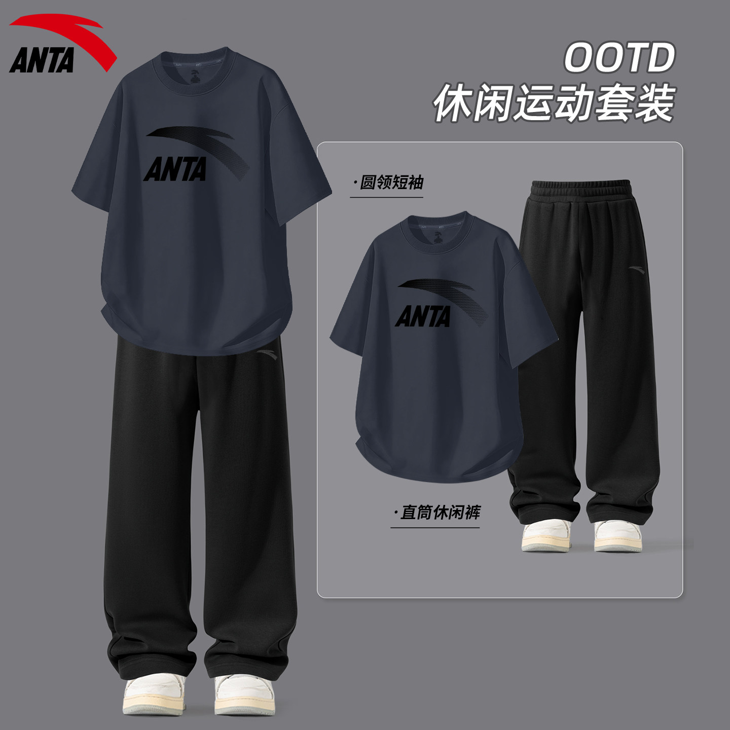 安踏潮流套装男时尚百搭青少年户外透气针织短袖长裤休闲懒人一套