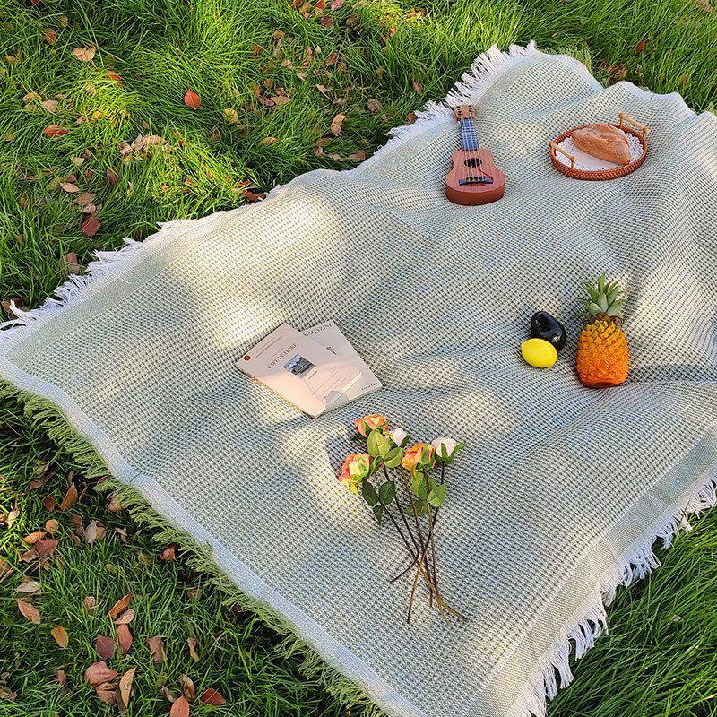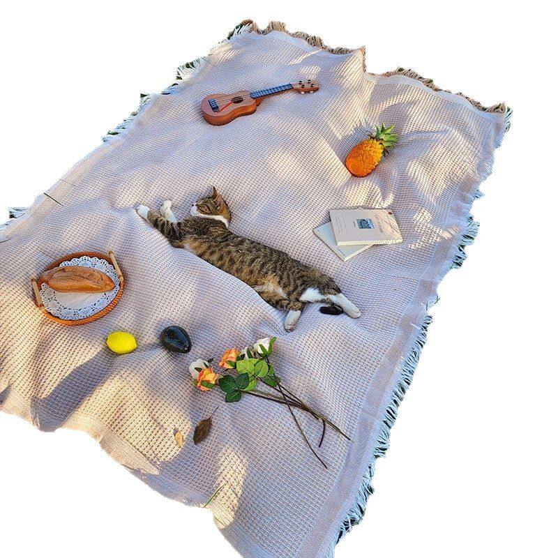 ins风户外春游垫野餐垫加厚便携白色毯子海边沙滩垫公园草地铺垫