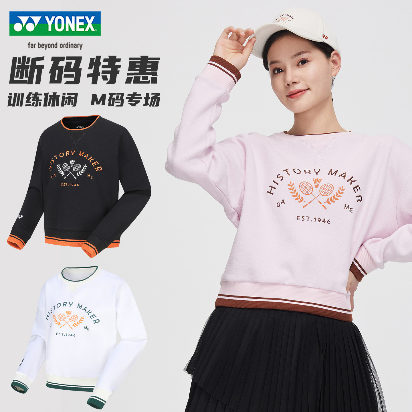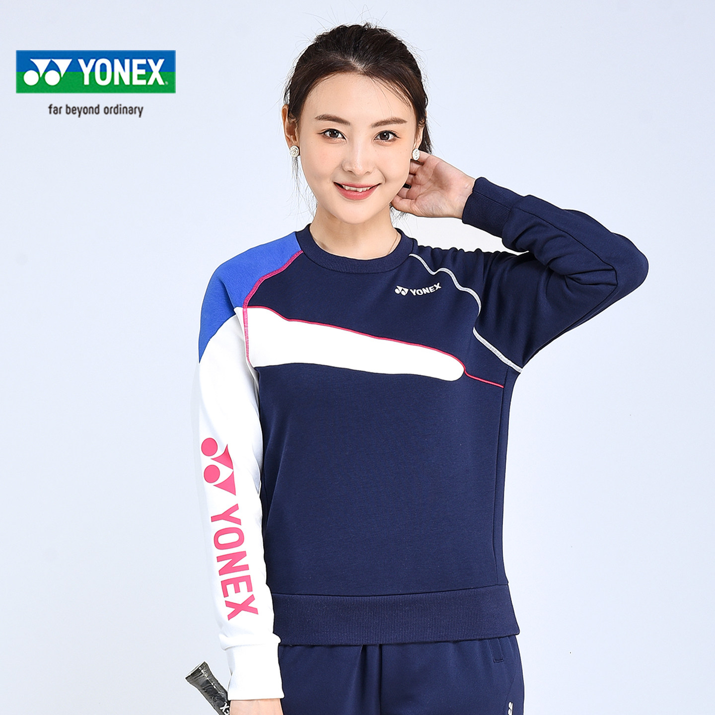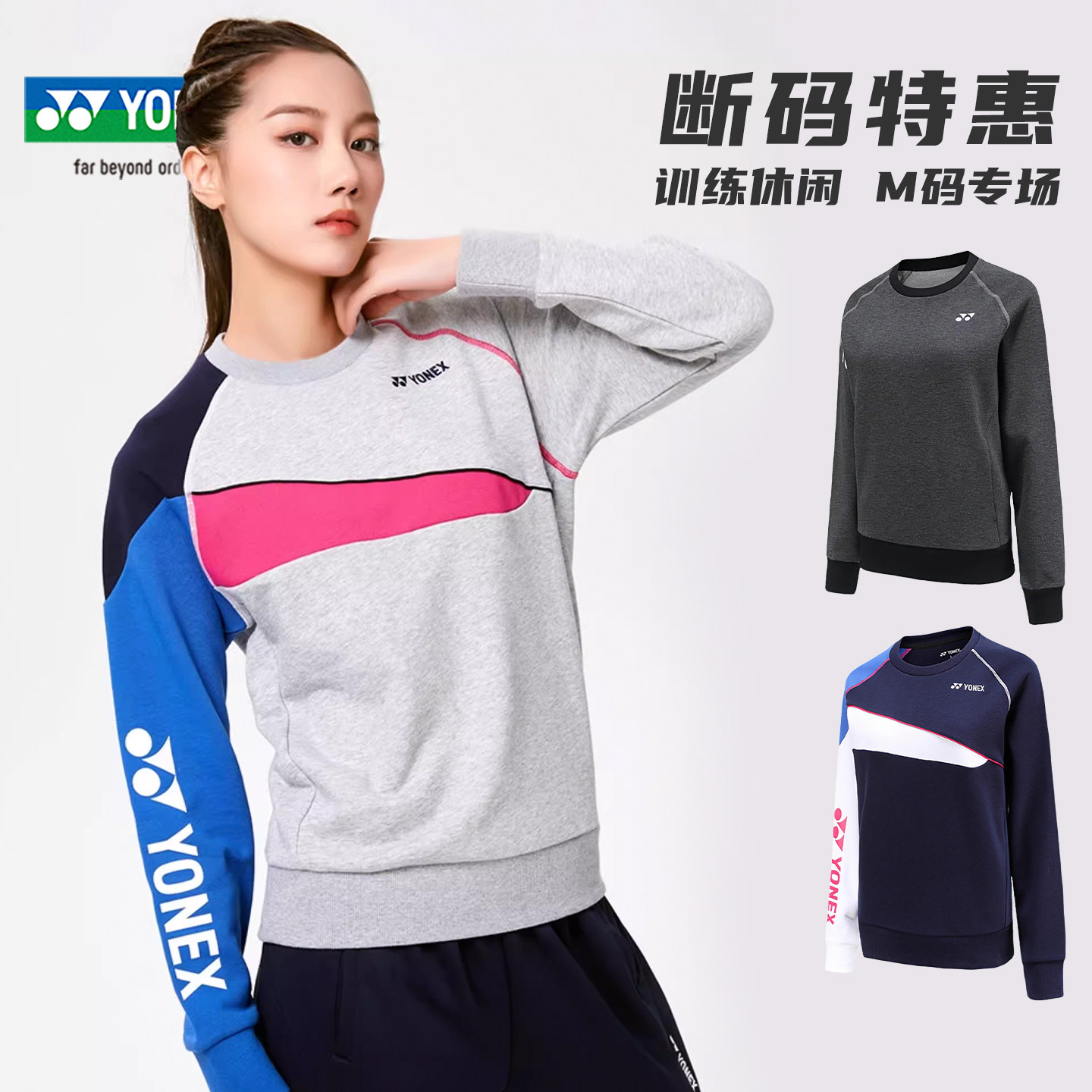 女款M码 YONEX尤尼克斯羽毛球服yy长袖卫衣 圆领舒适休闲运动上衣