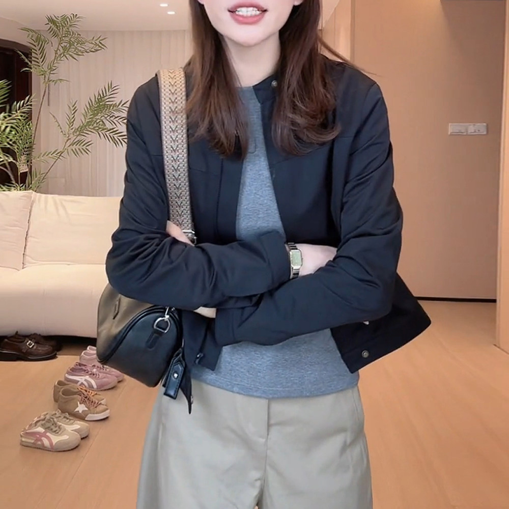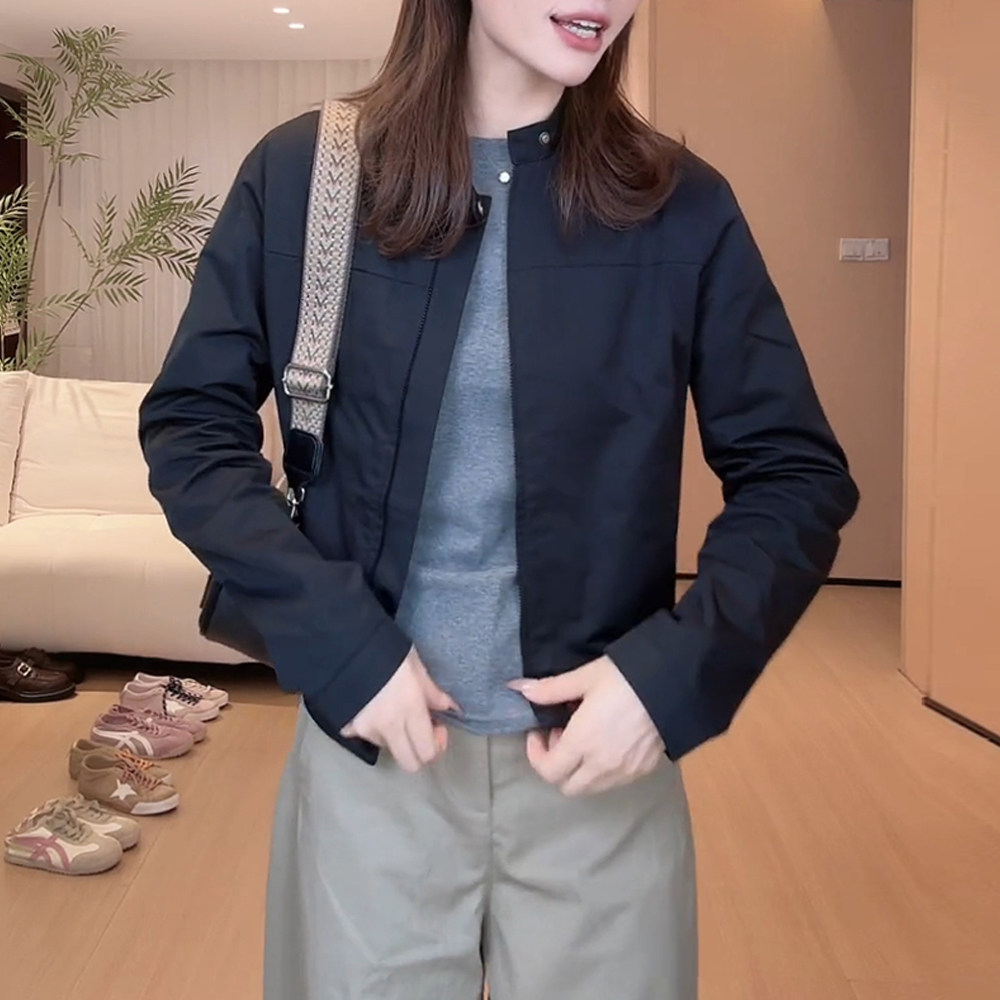 早春外套女短款小个子上衣2026新款春秋女装立领夹克时尚棒球服