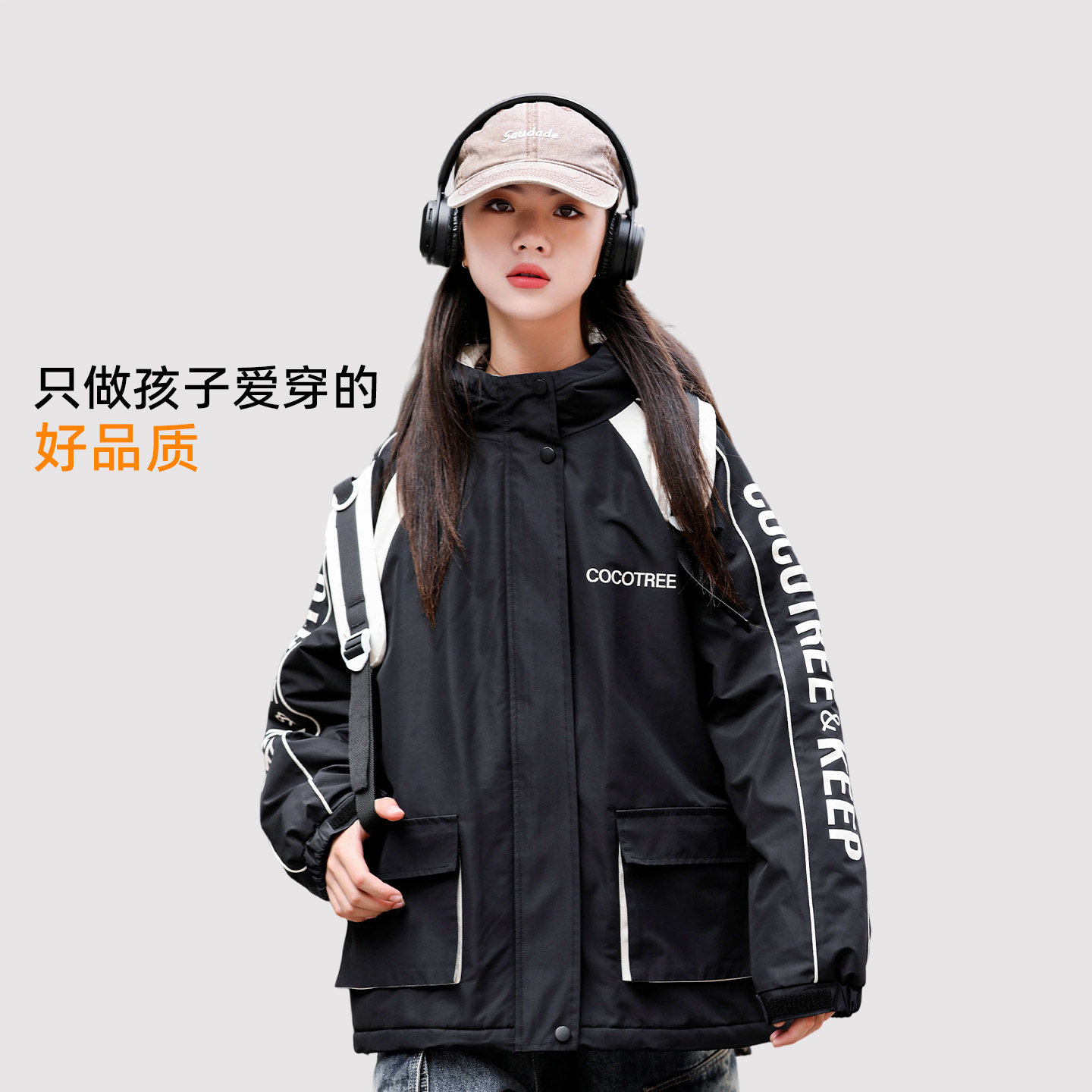女大童外套2025新款秋冬款夹棉加厚初中生青少年女孩时尚连帽上衣