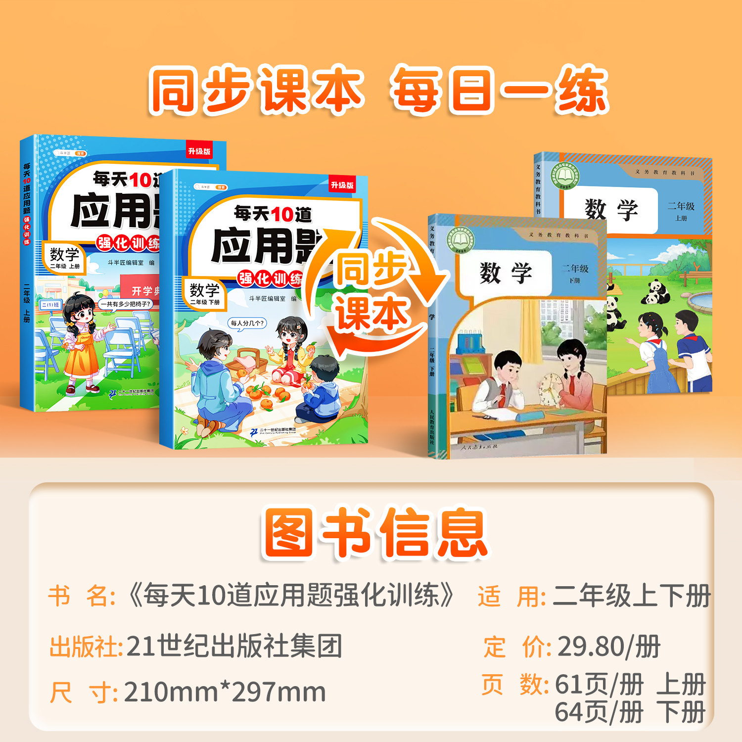 斗半匠二年级上册下册数学应用题专项训练数学思维练习题人教版计算强化同步练习册小学2年级每天10道解决问题口算加奥数举一反三