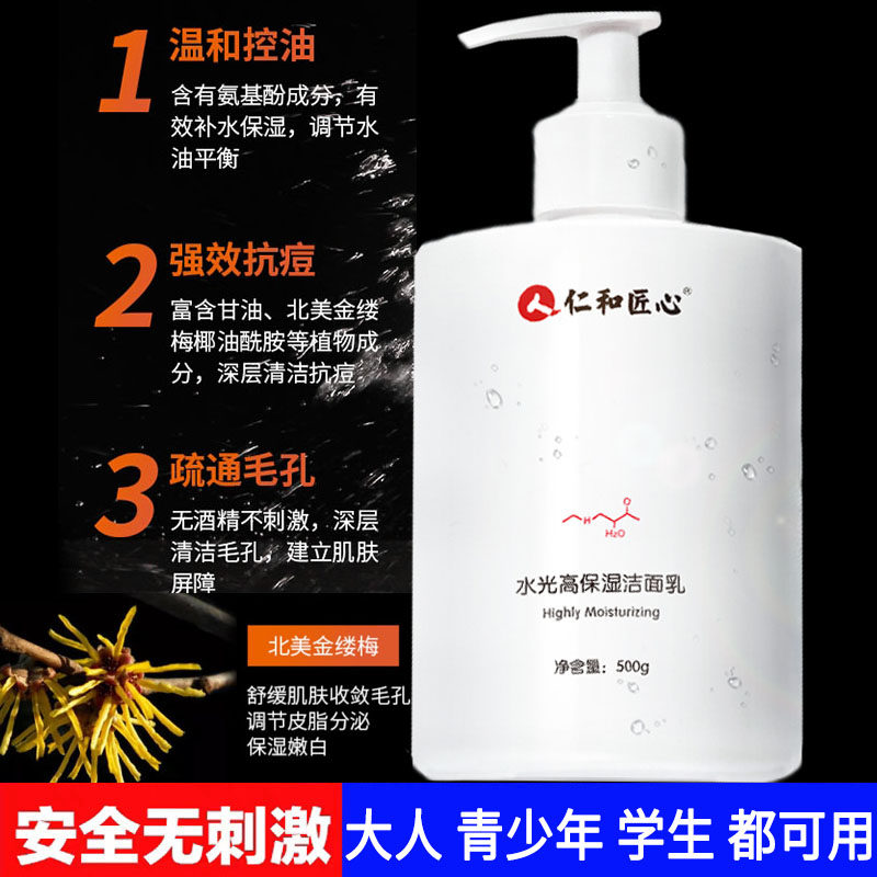 仁和匠心氨基酸洗面奶控油保湿青少年男孩洁面乳男女深层清洁毛孔