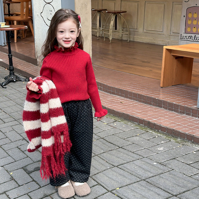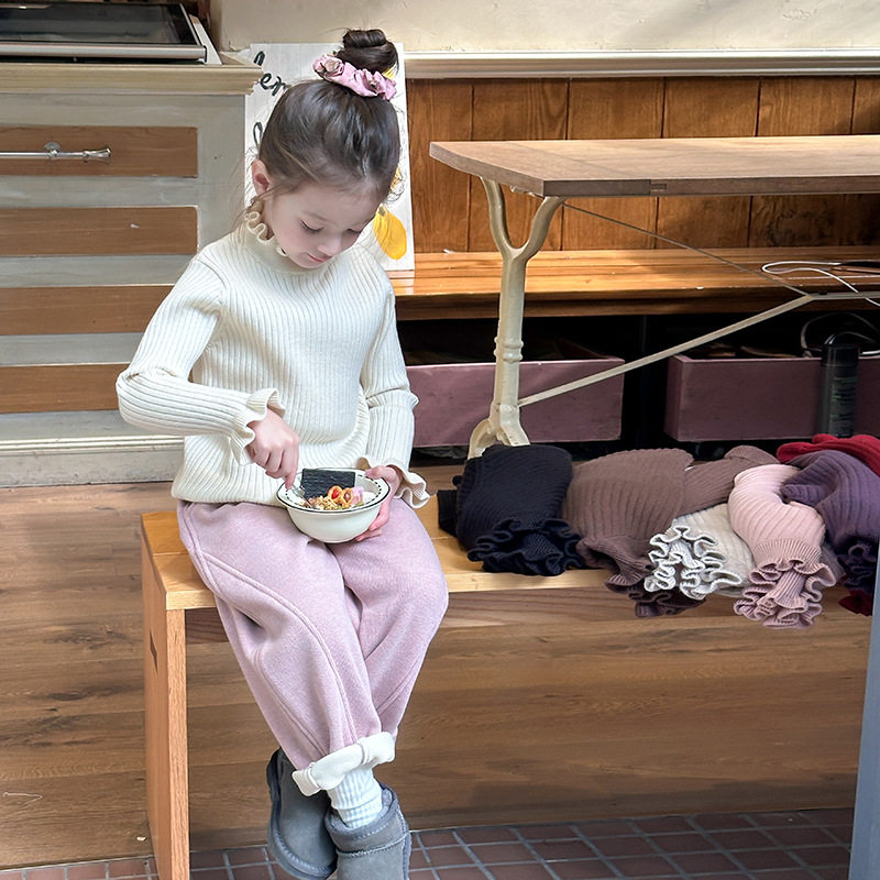 女童花边毛衣冬季新款中大童半高领保暖上衣儿童抗起球针织打底衫