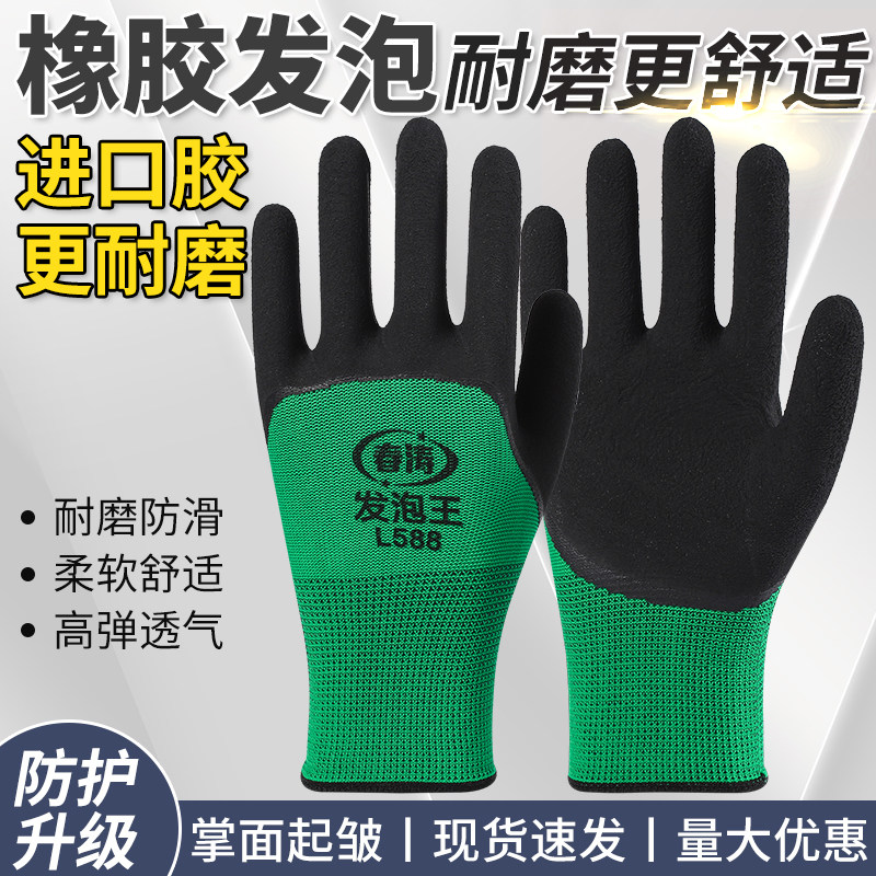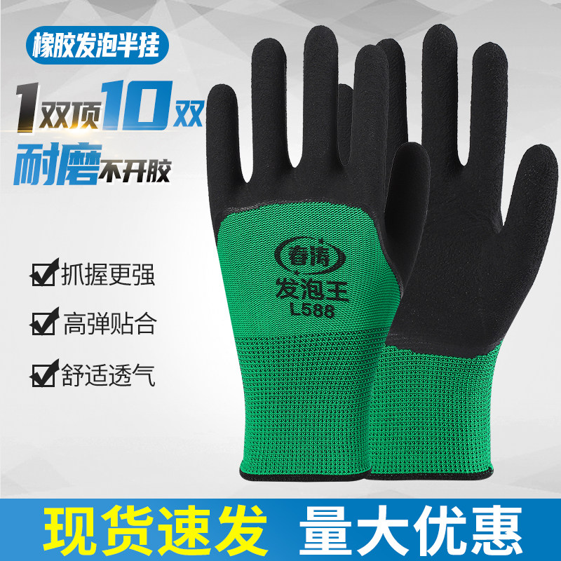 正品橡胶工作手套劳保耐磨干活带胶浸胶工地透气防滑乳胶发泡王