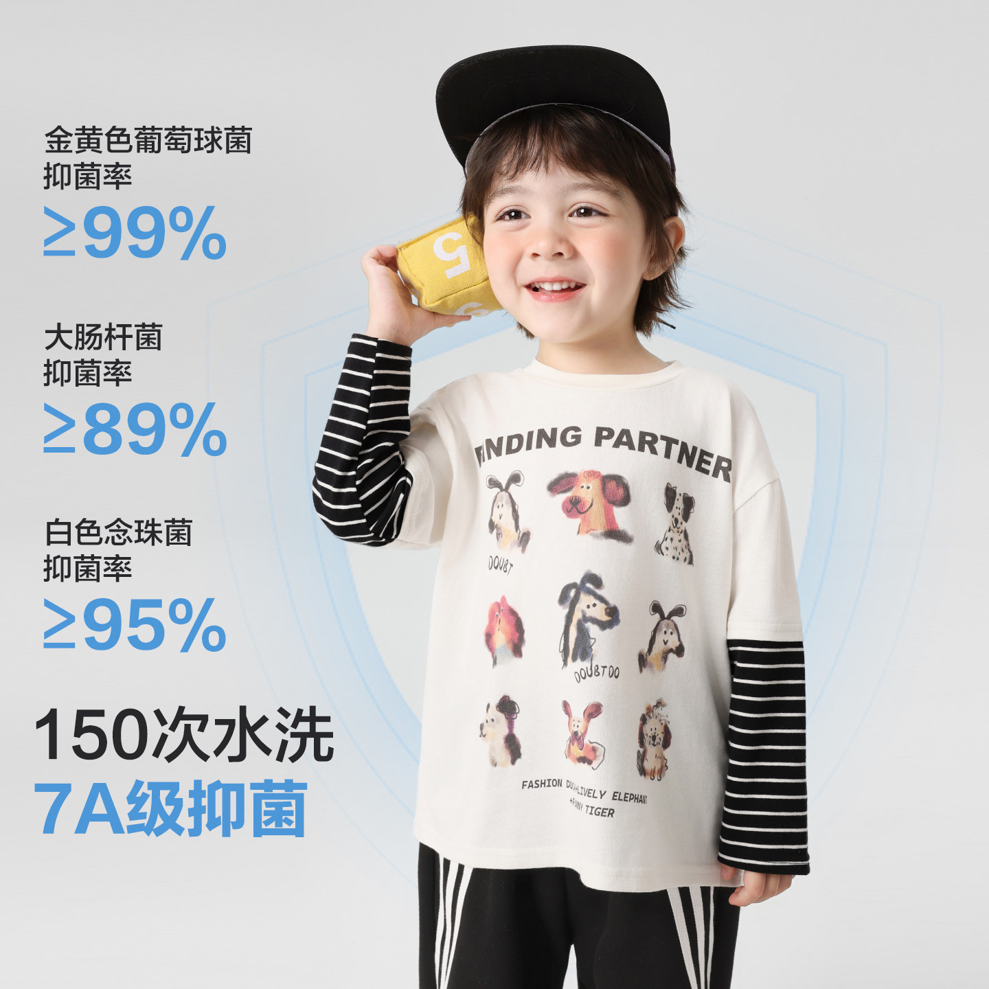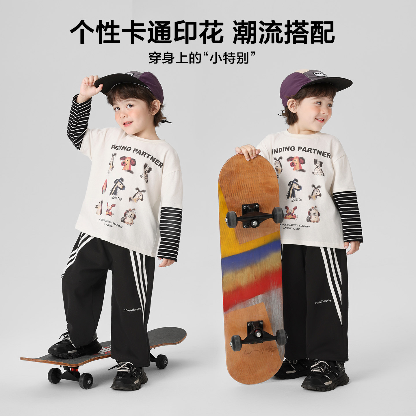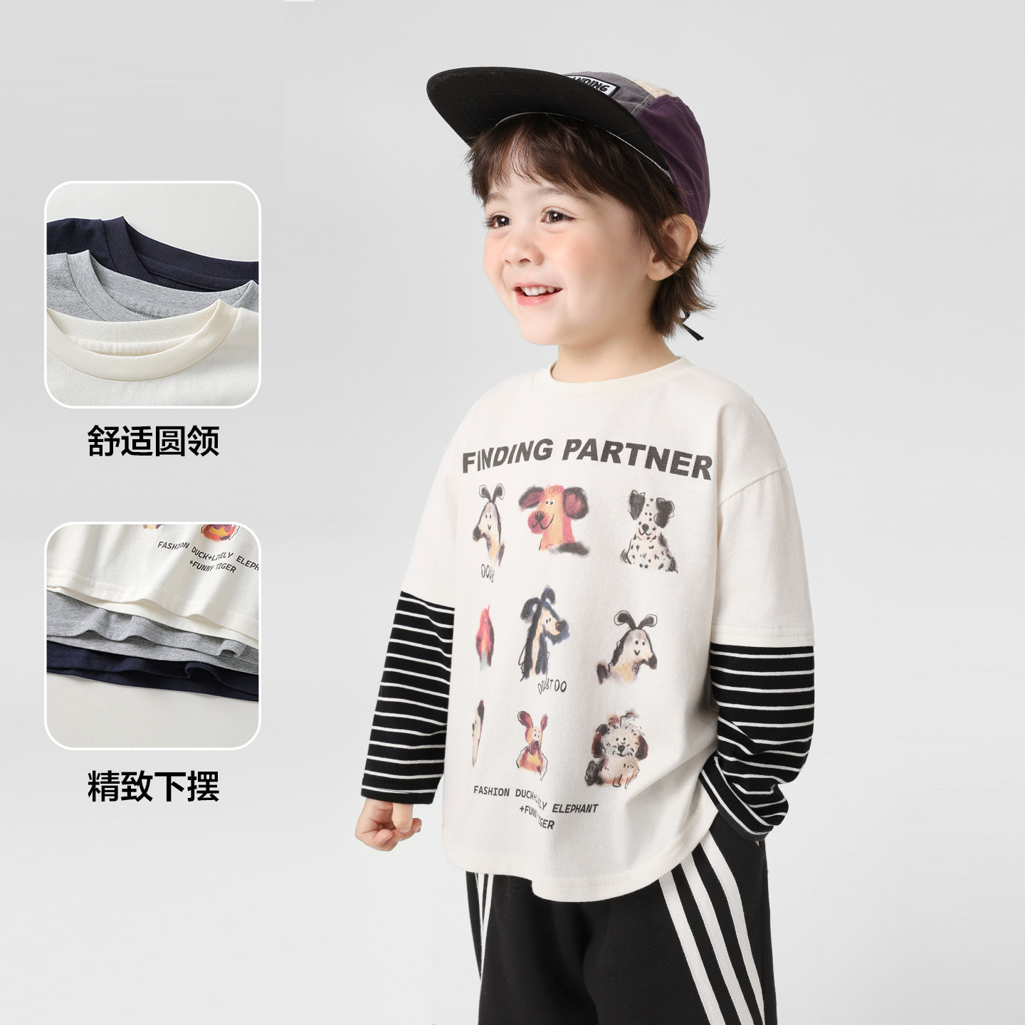 右欧男童假两件长袖T恤儿童内搭上衣春秋季新款童装女童潮打底衫