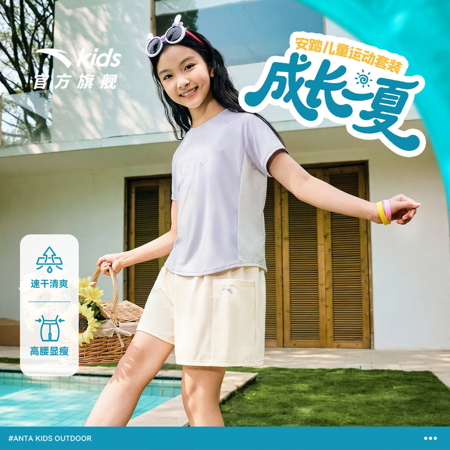 安踏儿童女童运动套装2026年夏季新款舒适速干女孩短袖短裤运动装