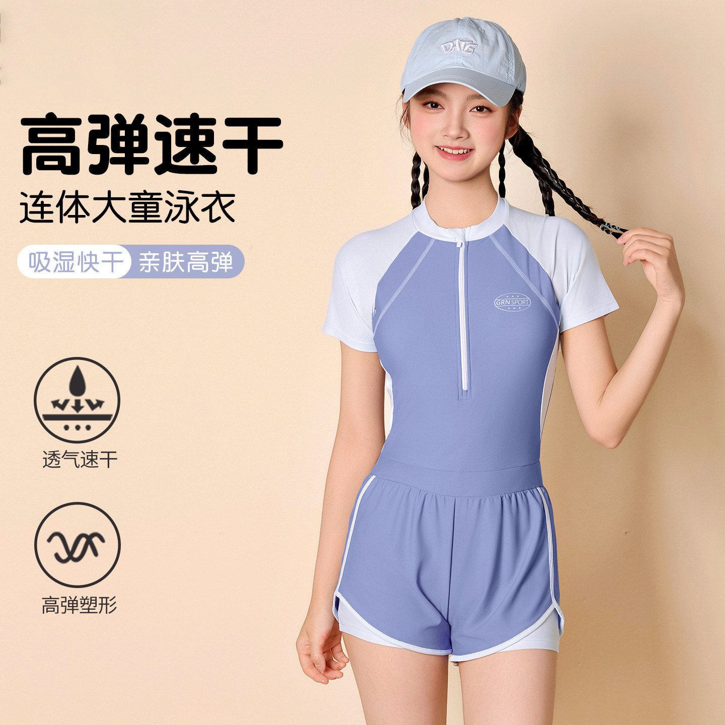 10岁女童连体防晒专业竞速泳衣11-13少女孩带胸垫中大童14-16泳装