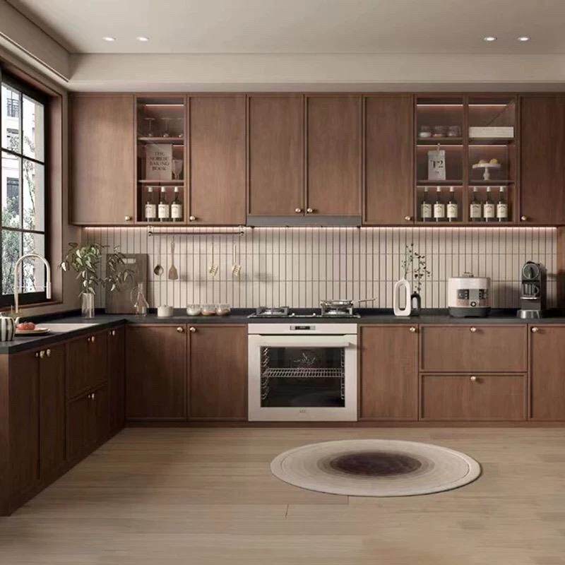 新中式全屋定制衣柜整体卧室实木衣帽间柜门别墅中古风原木餐柜