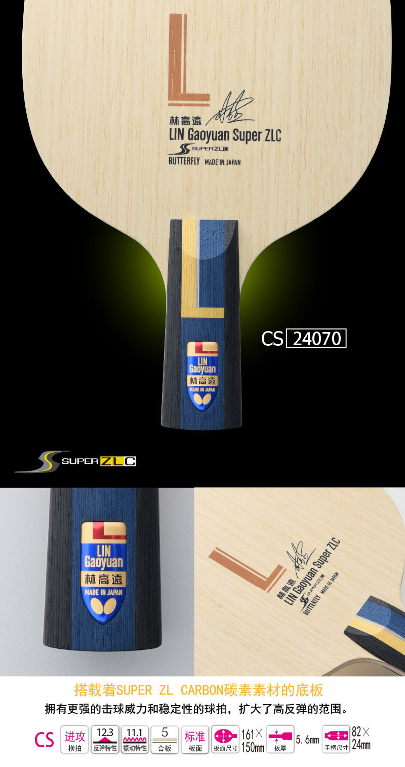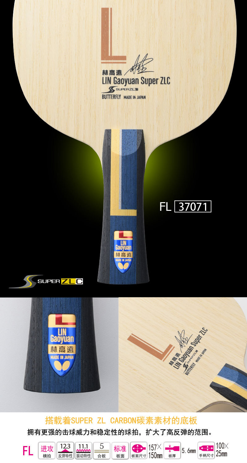 日本Butterfly蝴蝶王乒乓球拍超级林高远SUPER ZLC乒乓球底板