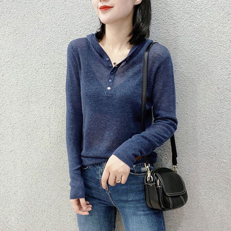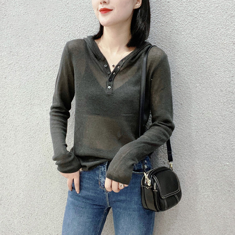 冰丝T恤女装2026早春新款时尚薄款防晒v领短款宽松针织衫长袖上衣