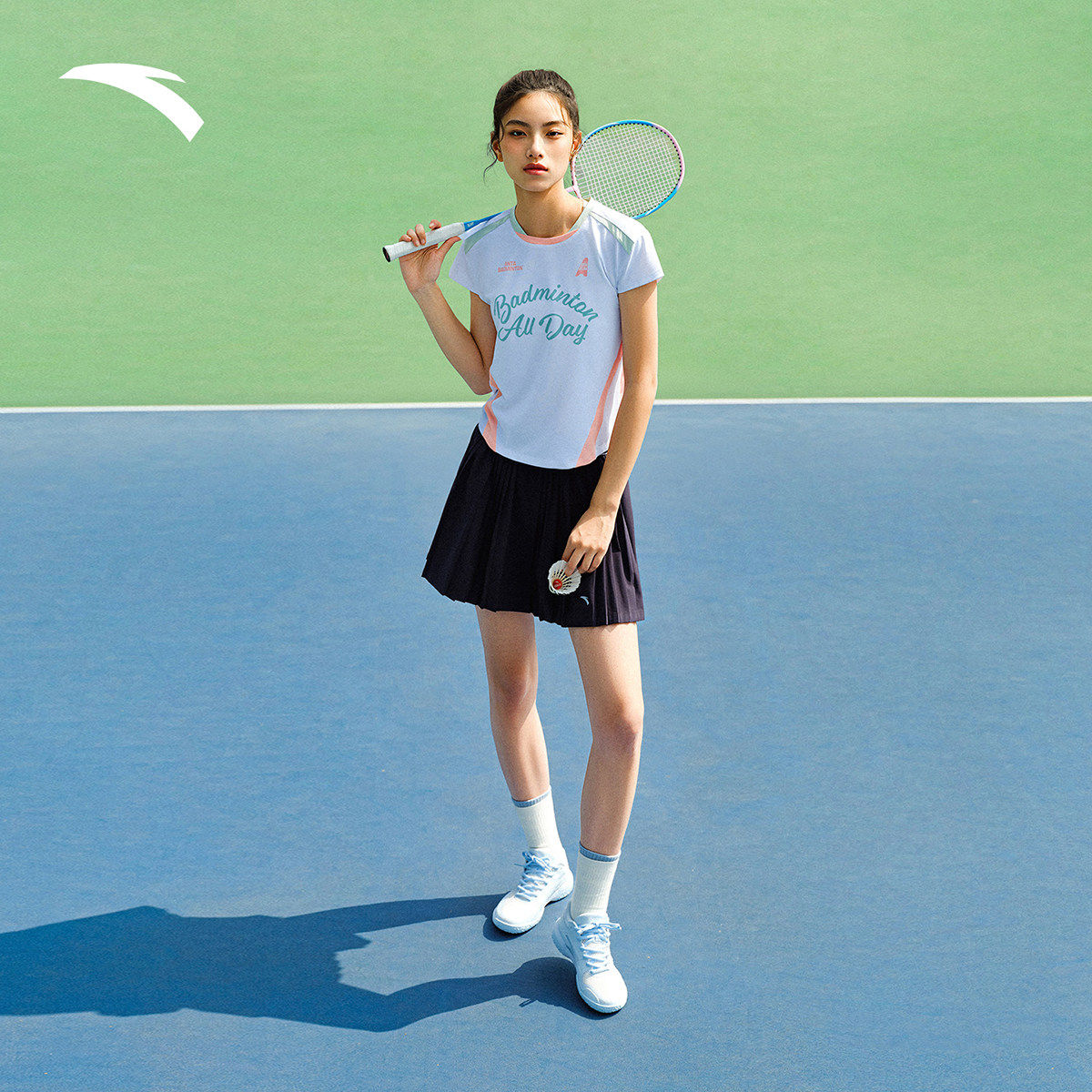 安踏速干网球裙半身裙女夏季新款A字百褶裙高弹防走光羽毛球短裙