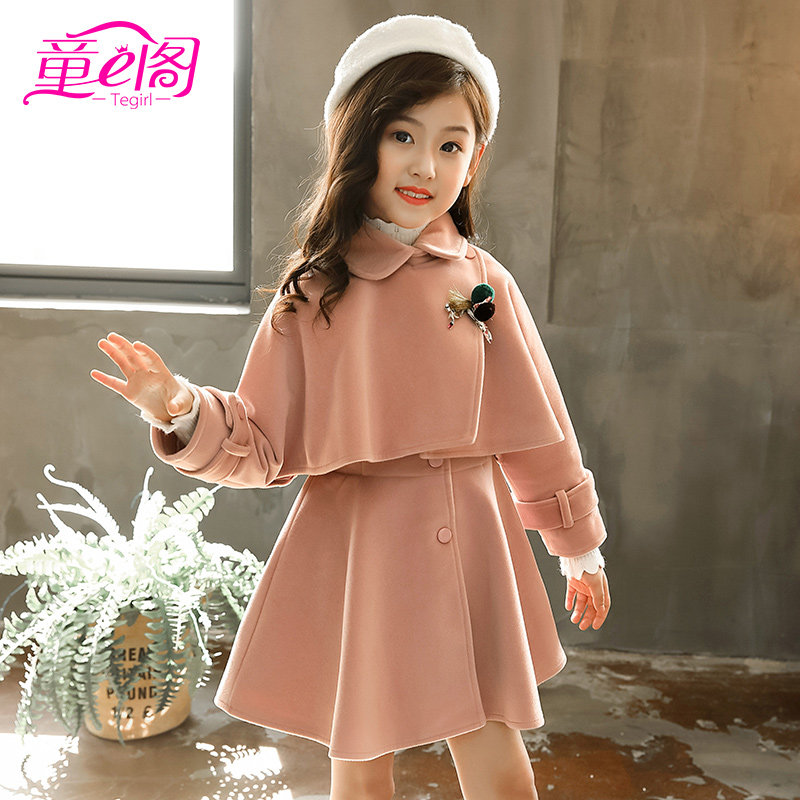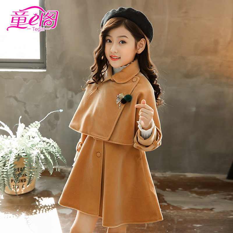 女童毛呢披风连衣裙套装秋冬新款儿童呢子洋气网红裙子两件套韩版