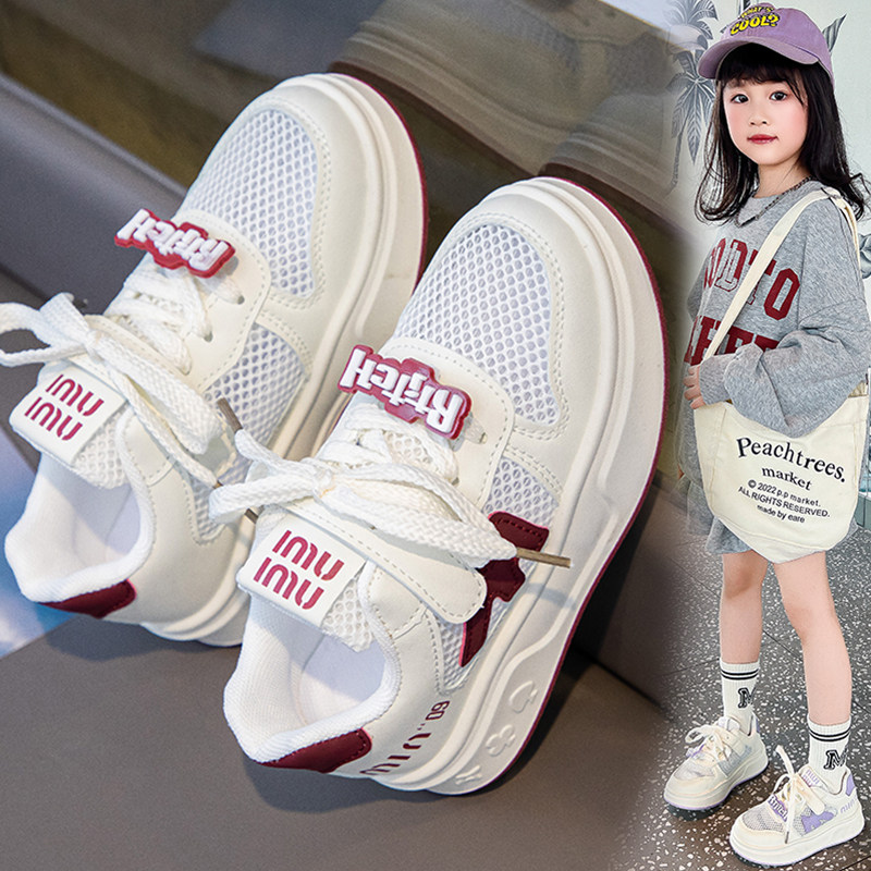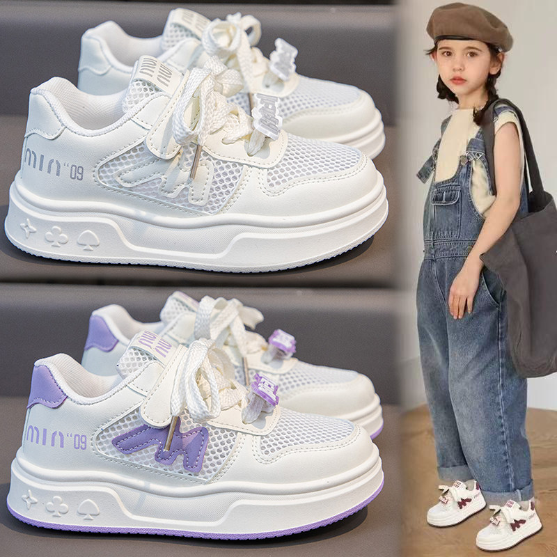 女童鞋子单网鞋2026新款夏季儿童软底透气运动小白鞋女孩镂空板鞋