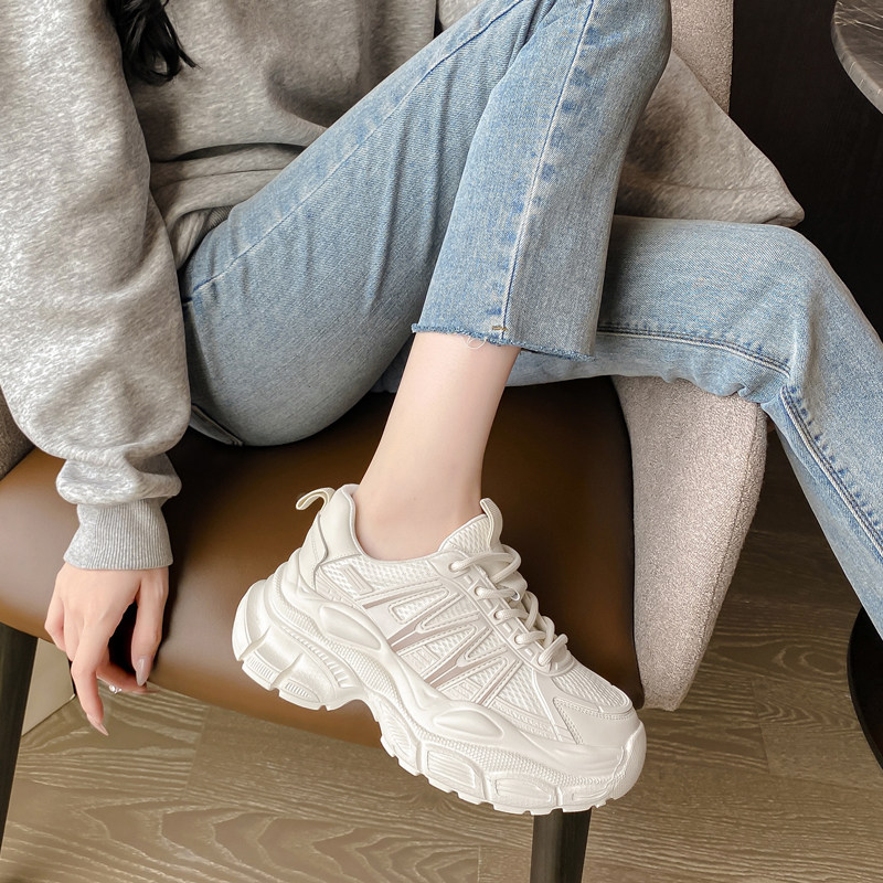 2025新款厚底内增高网纱真皮老爹小白鞋小码休闲运动鞋313233女鞋