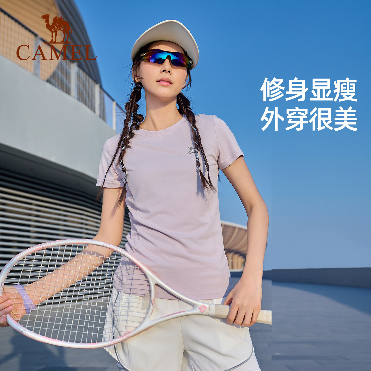 骆驼运动速干t恤女2026春夏季新款透气户外跑步登山瑜伽服上衣